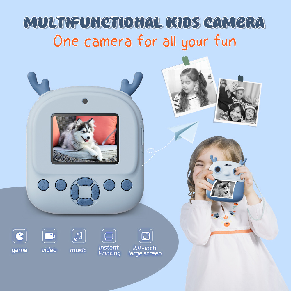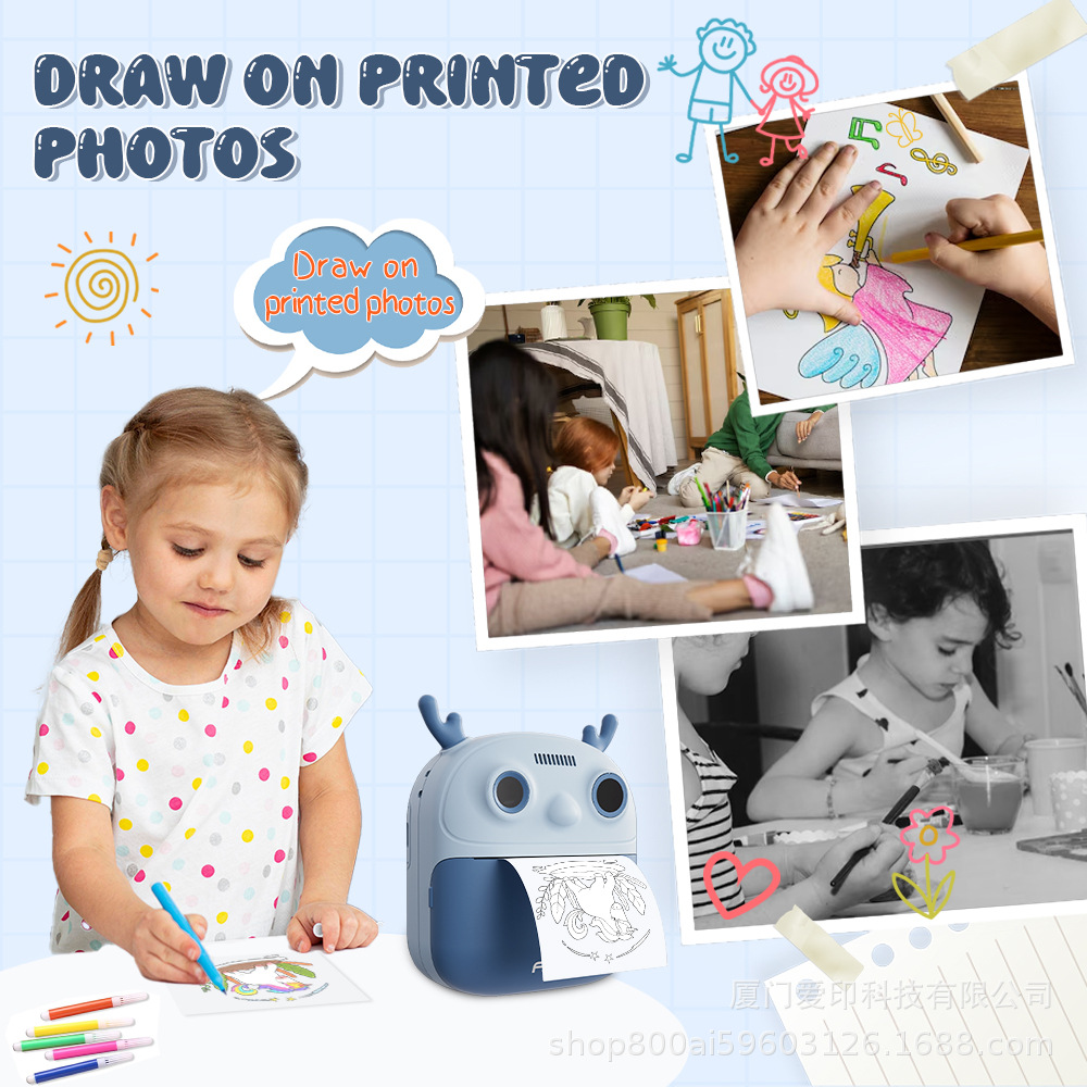 跨境热款儿童即时热敏照片打印机卡通迷你自拍相机可玩游戏录像