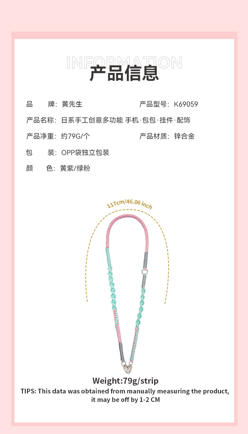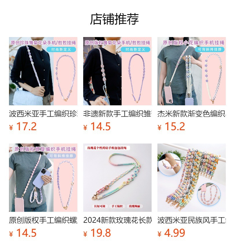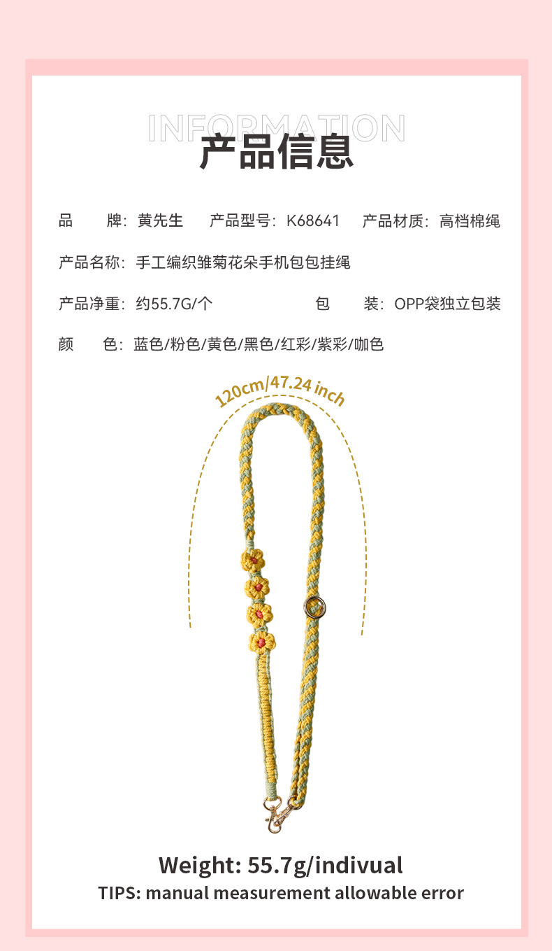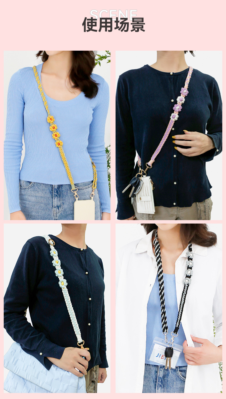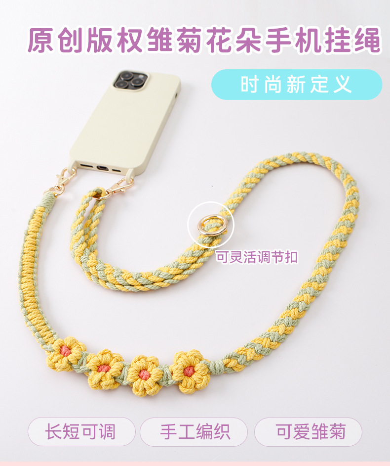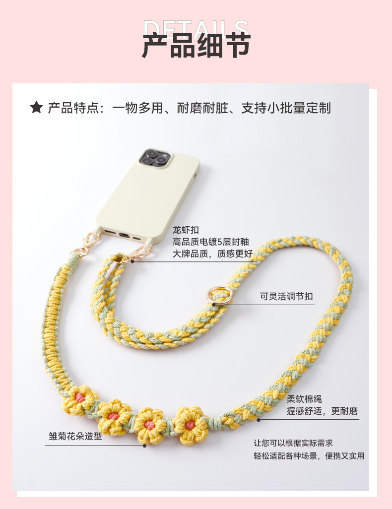 杰米波西米亚手工编织手机绳斜挎可调节斜跨花朵菊花小雏菊手机链