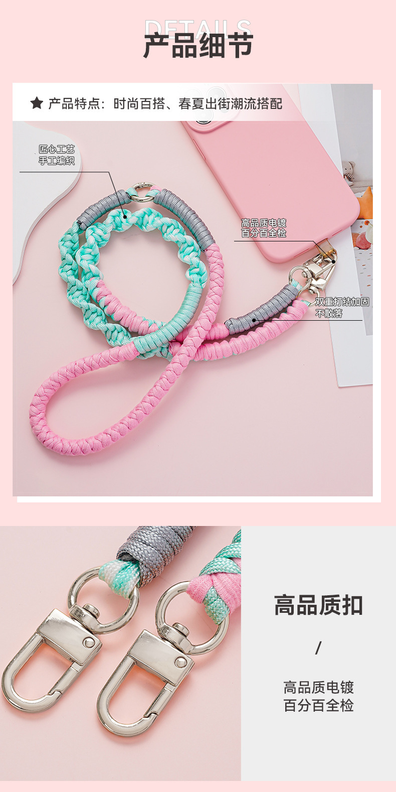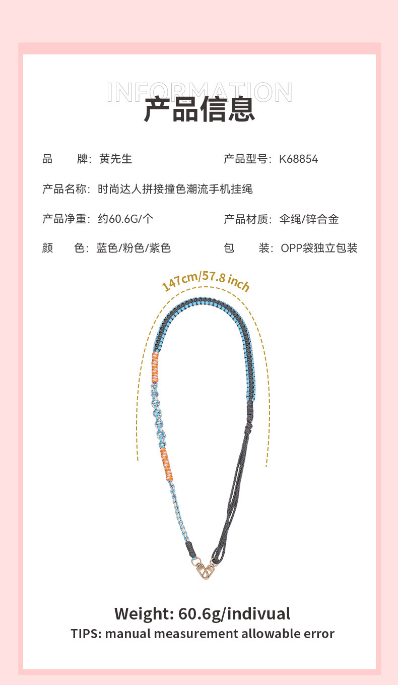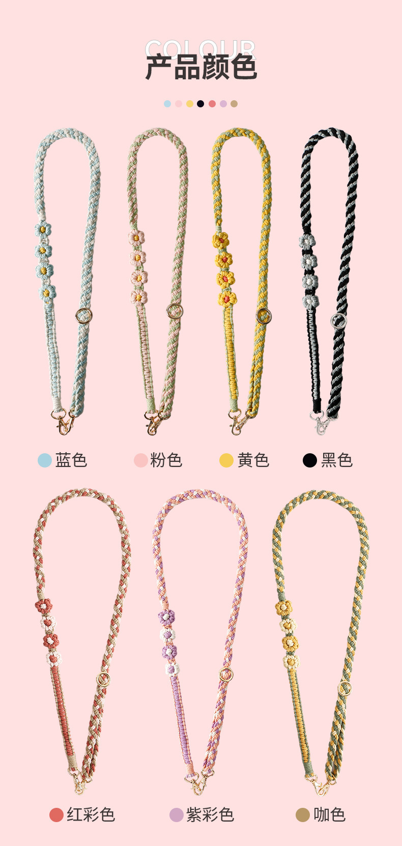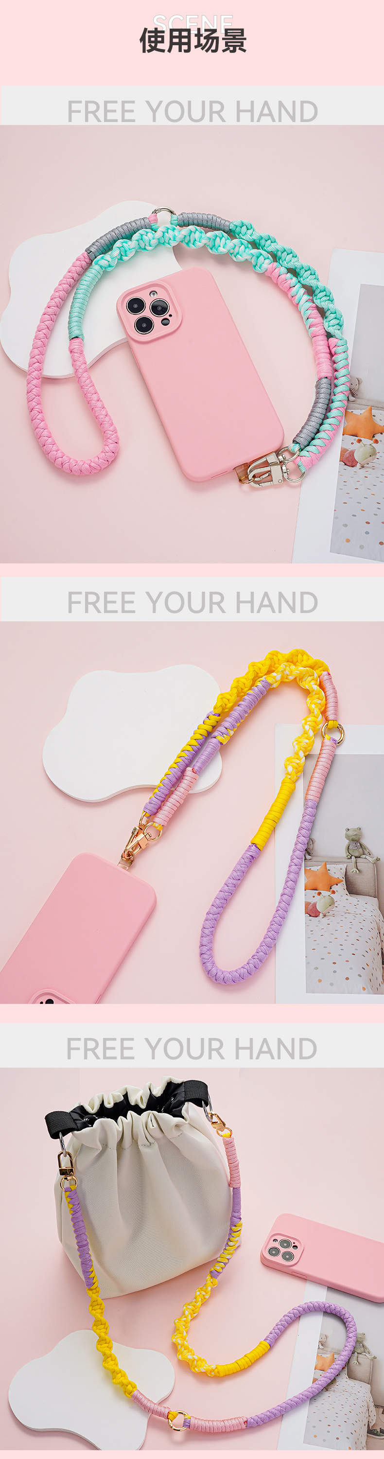 杰米波西米亚手工编织手机绳斜挎可调节斜跨花朵菊花小雏菊手机链