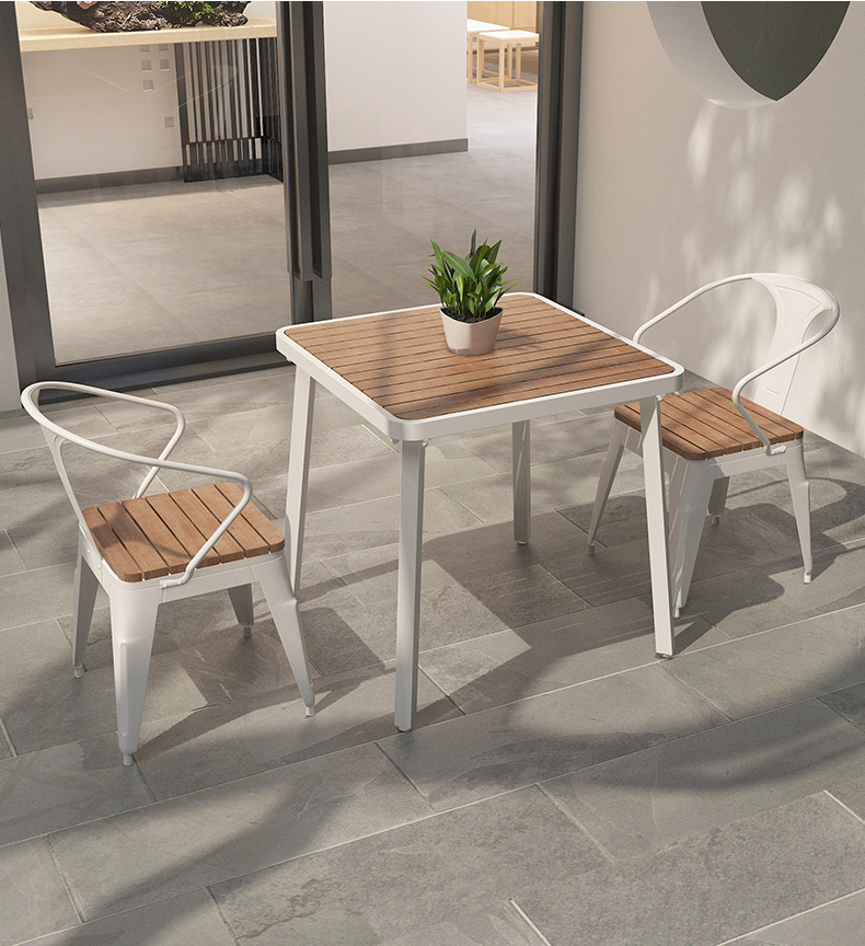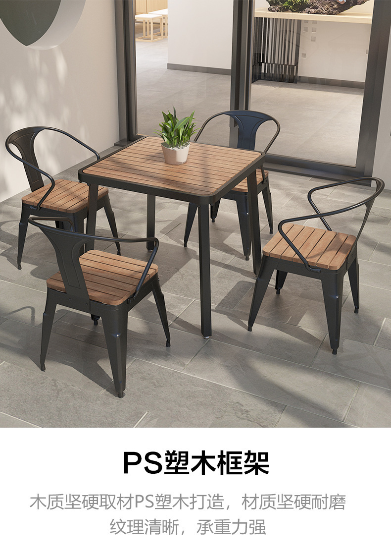 户外塑木桌椅庭院室外休闲餐桌花园奶茶店露天阳台咖啡厅桌椅组合