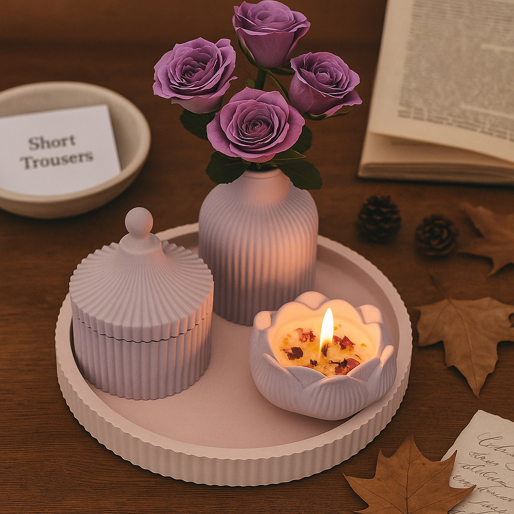 规格 莲花烛台条纹花瓶模具(一套),莲花硅胶模具,圆形条纹收纳盒,收纳托盘硅胶模具,条纹花瓶硅胶模具
