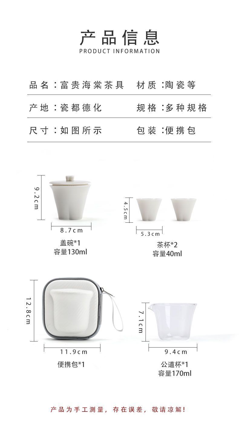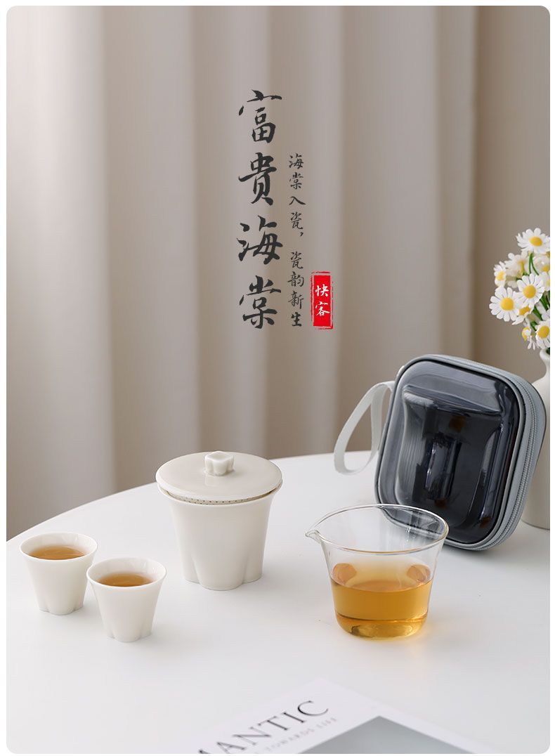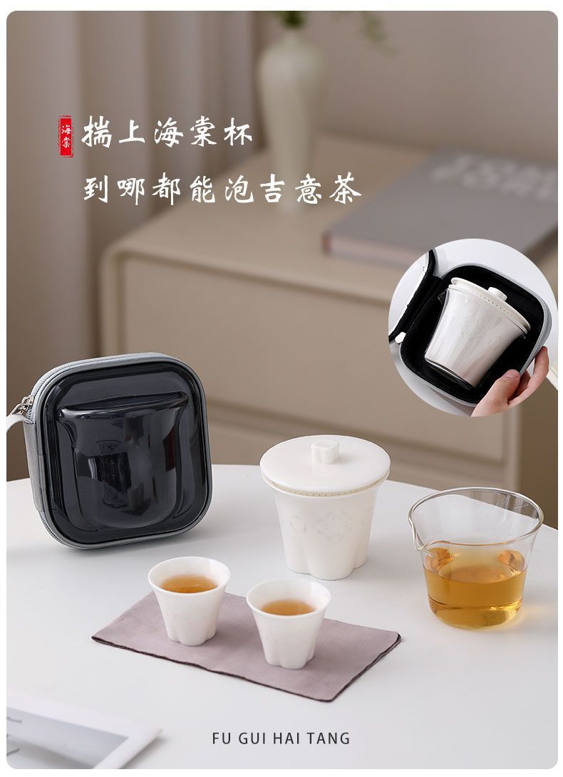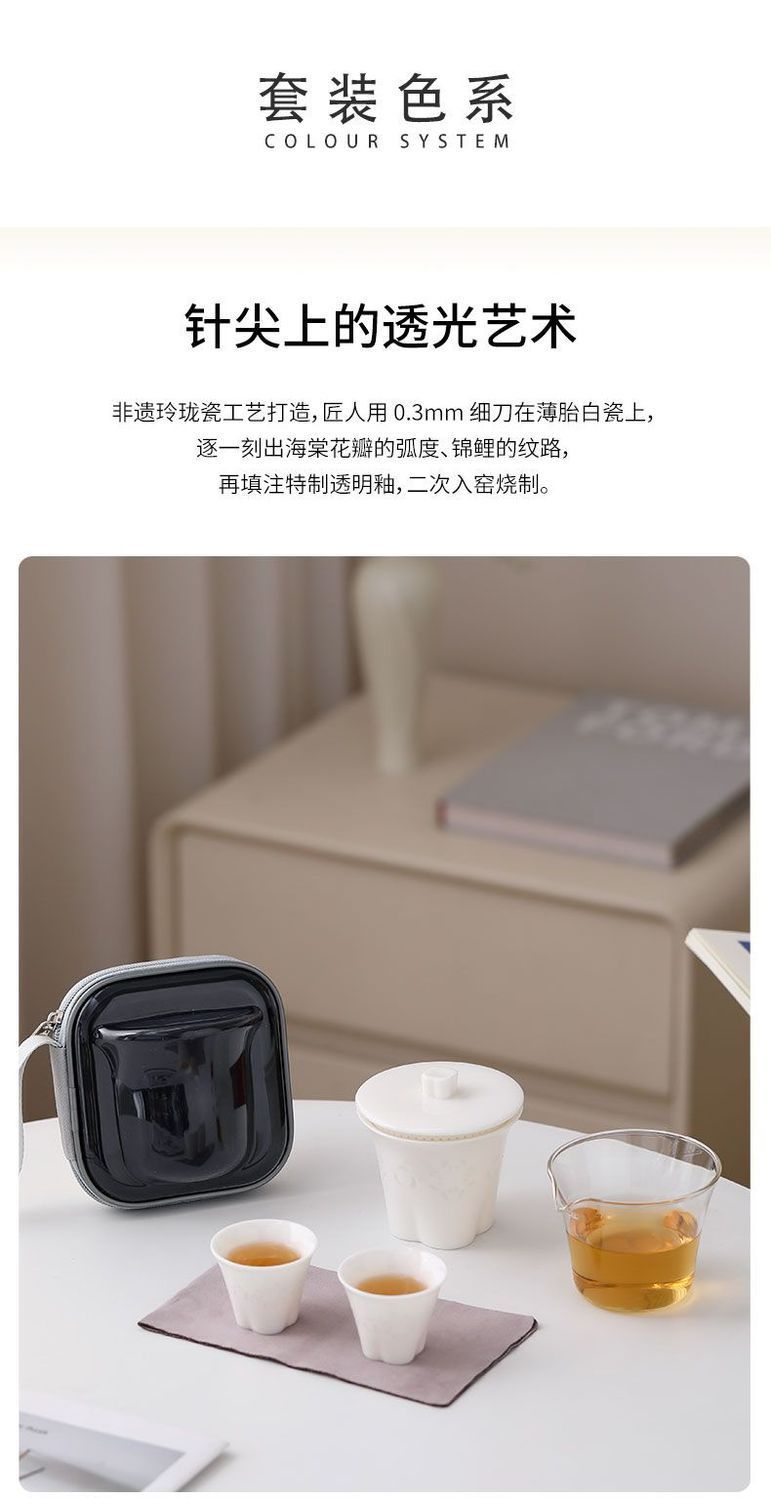 富贵海棠玉瓷玲珑旅行茶具套装便携快客杯一壶二杯户外露营礼品