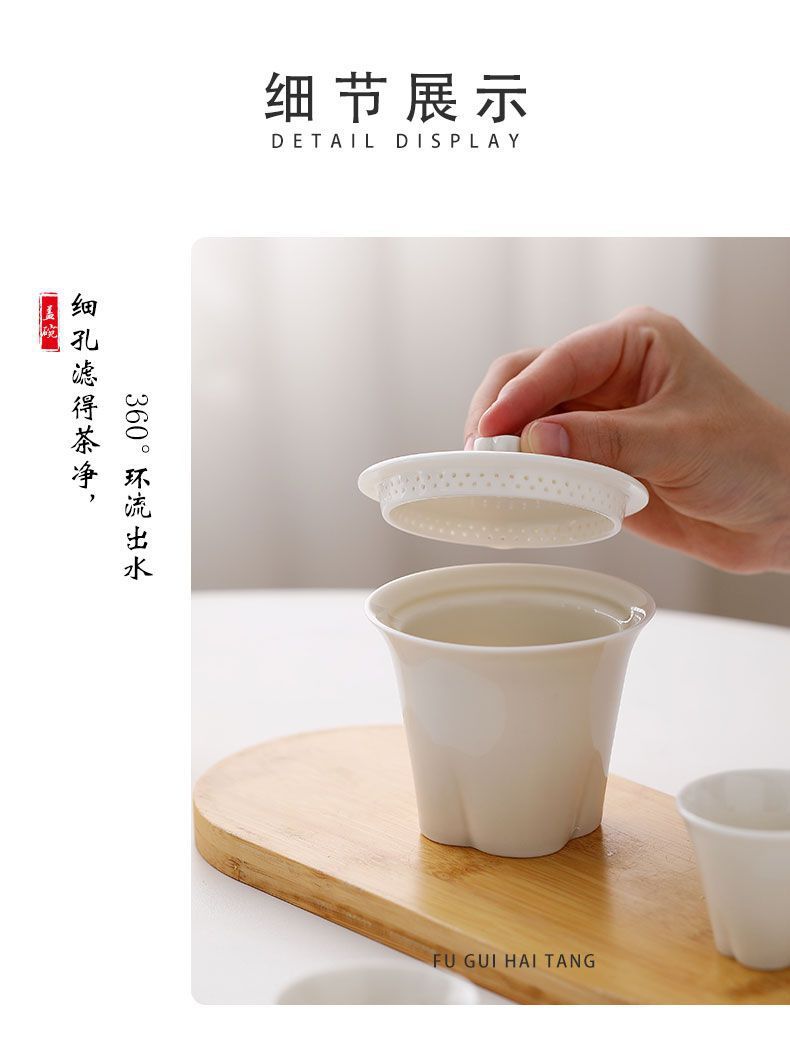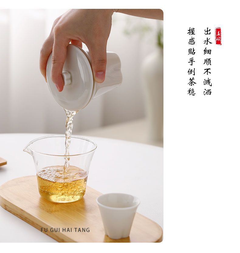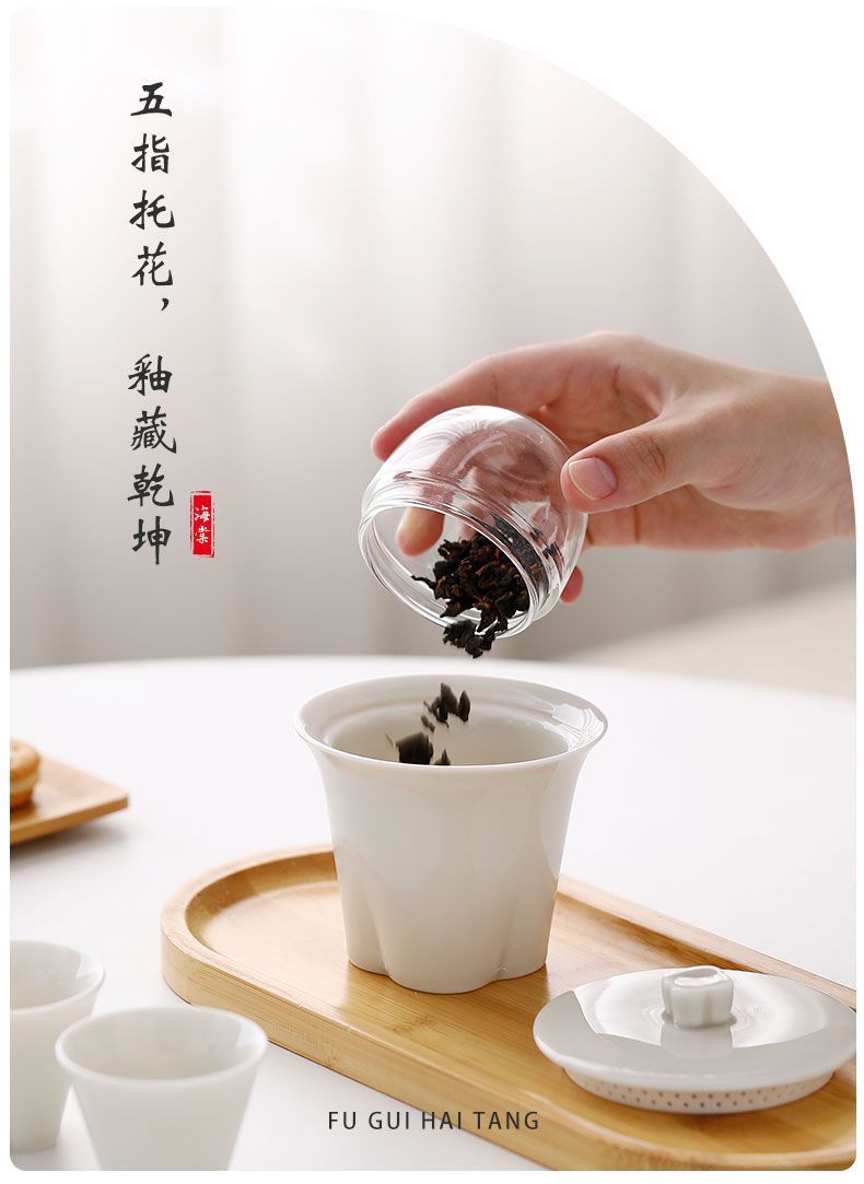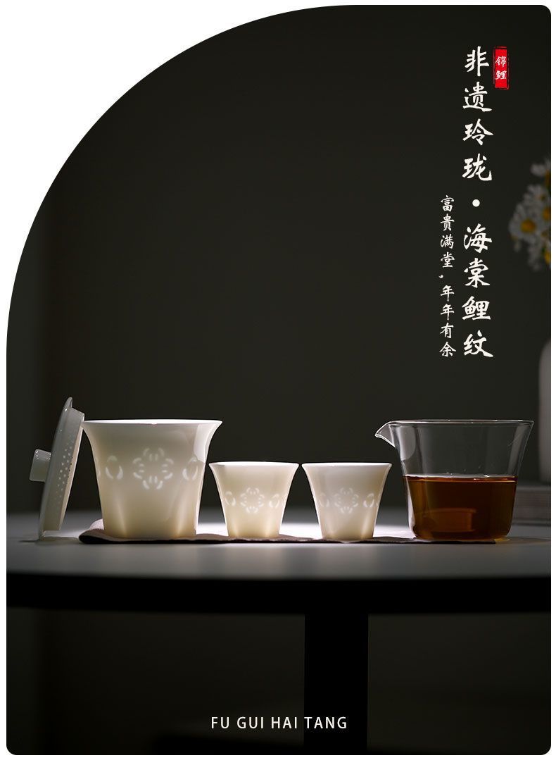富贵海棠玉瓷玲珑旅行茶具套装便携快客杯一壶二杯户外露营礼品