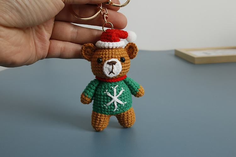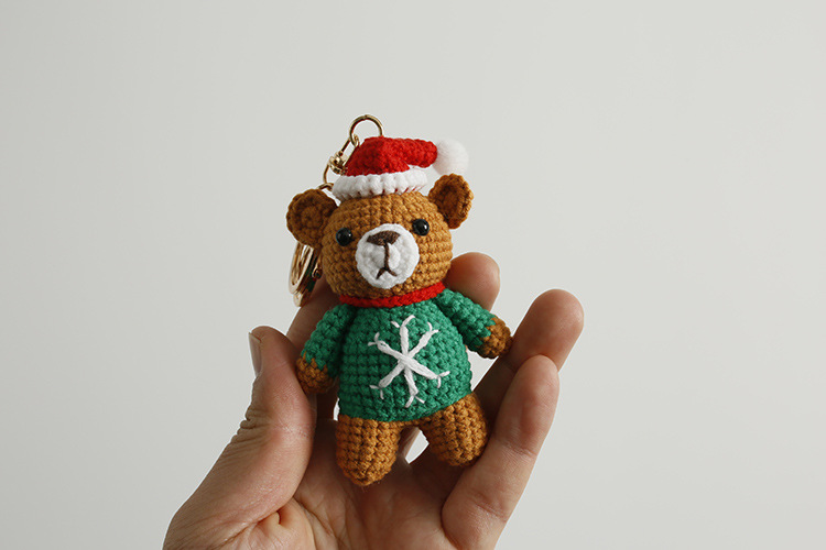 新款手工编织圣诞小熊挂件 毛线钩织圣诞节棕熊挂饰 可爱熊包挂