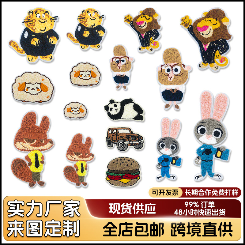 アニメ動物タオル刺繍布貼りコンピュータ刺繍章Chenilleパッチ服補助材料パッチ
