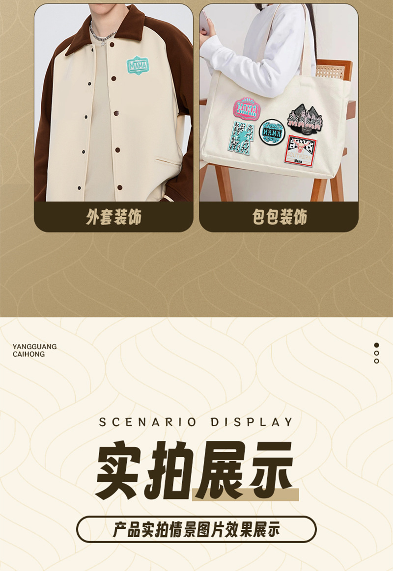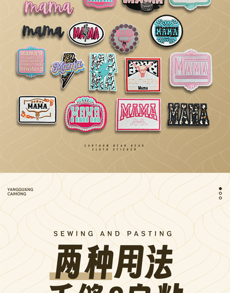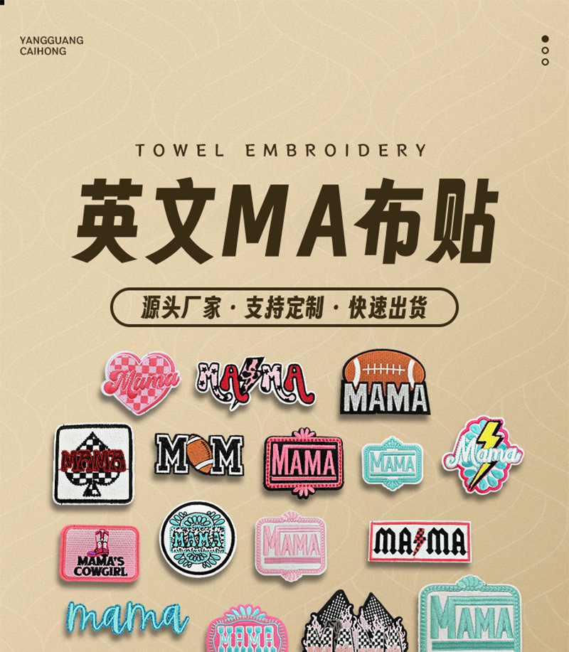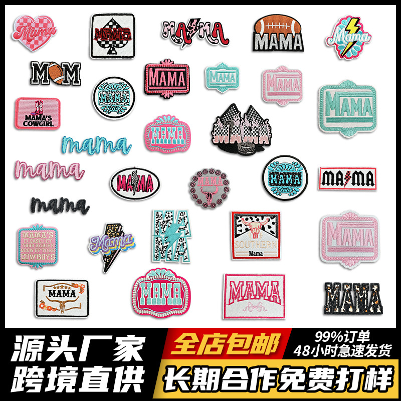 跨境专供 MAMA刺绣布贴熨烫可缝补丁贴自粘绣华章衣服包包装饰贴