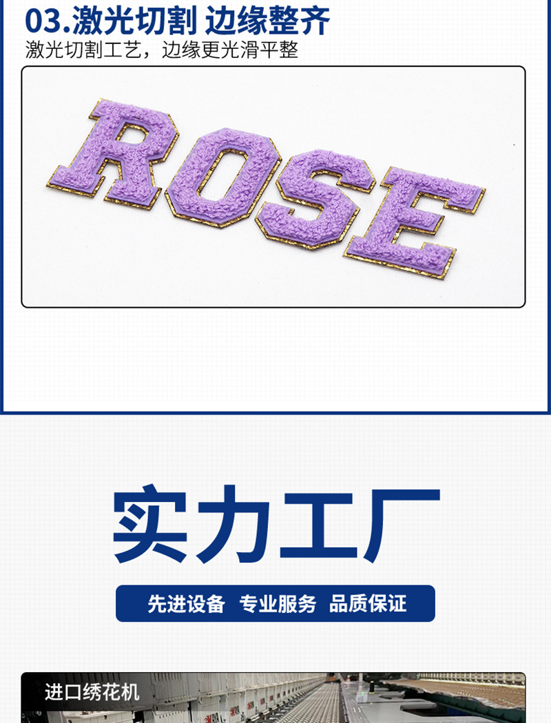 カスタム文字布ステッカー、粘着性のあるタオル刺繍、金縁シェニール素材、刺繍パッチ、越境専用刺繍ステッカー