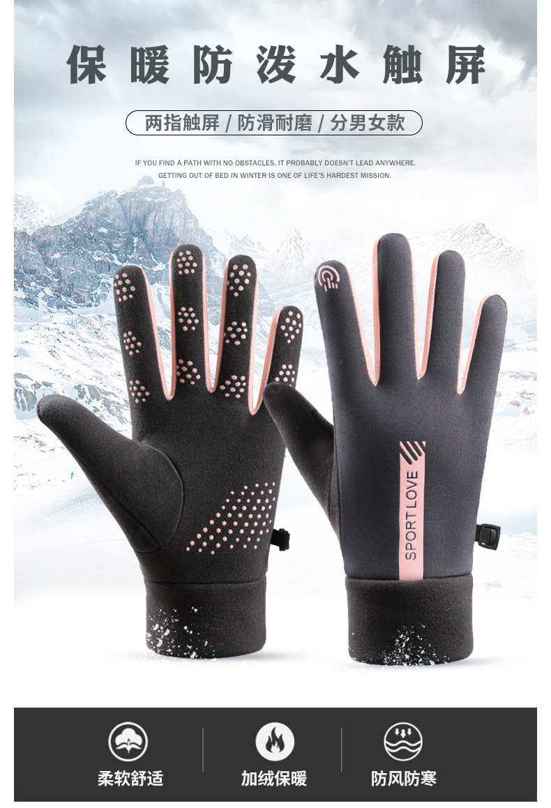 冬季骑行保暖手套男女通用防泼水加厚加绒防寒运动手套防滑可触屏