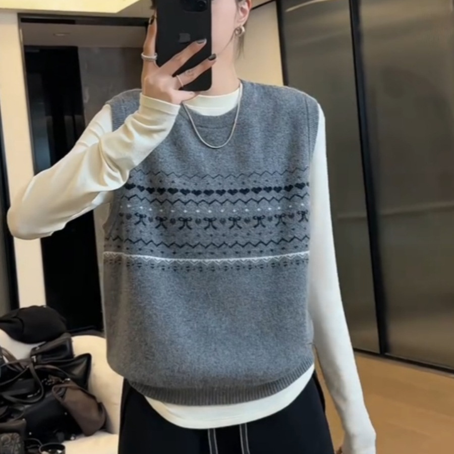 法式复古提花叠穿针织衫马甲女2025秋冬新款保暖内搭无袖背心上衣