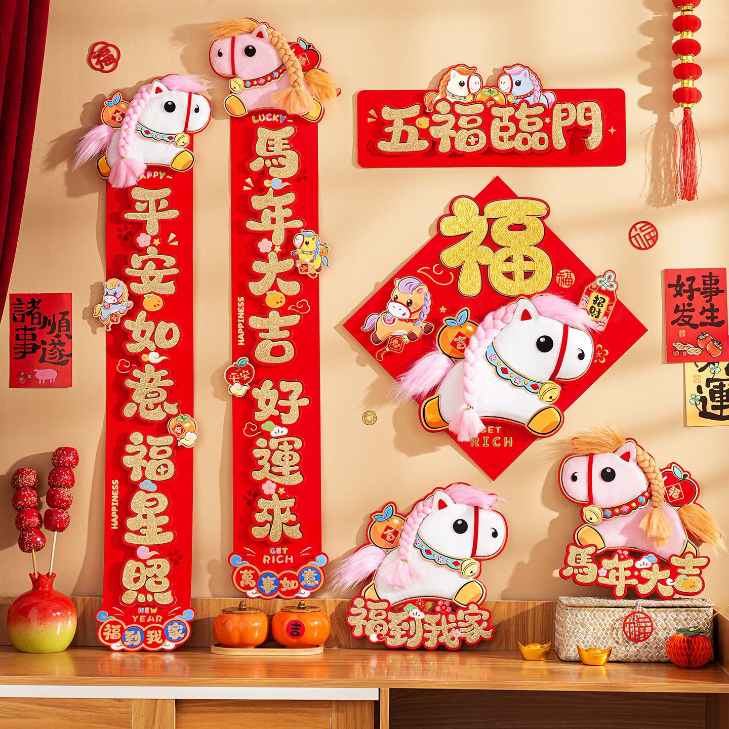 2026马年新款卡通毛绒对联家用自粘植绒春联过年春节大门装饰年画