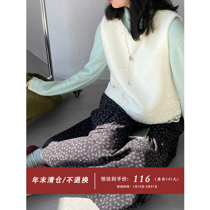 【福利款 不退换】江左 法式精致温柔蕾丝拼接背心女冬上衣 25332
