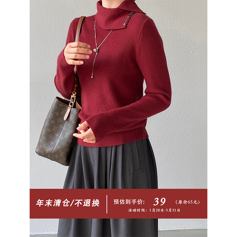 【福利款 不退换】江左 堆堆领纽扣打底针织女秋冬简约上衣 90105