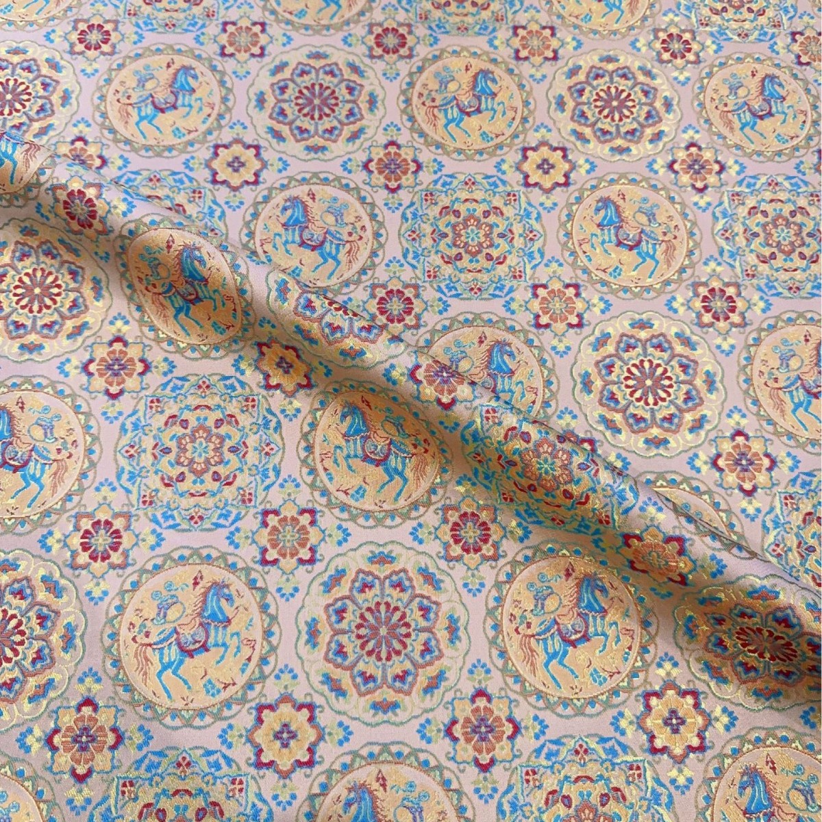 国风仿宋锦汉服面料新中式宝相花小马服装马甲上衣抱枕提花布料