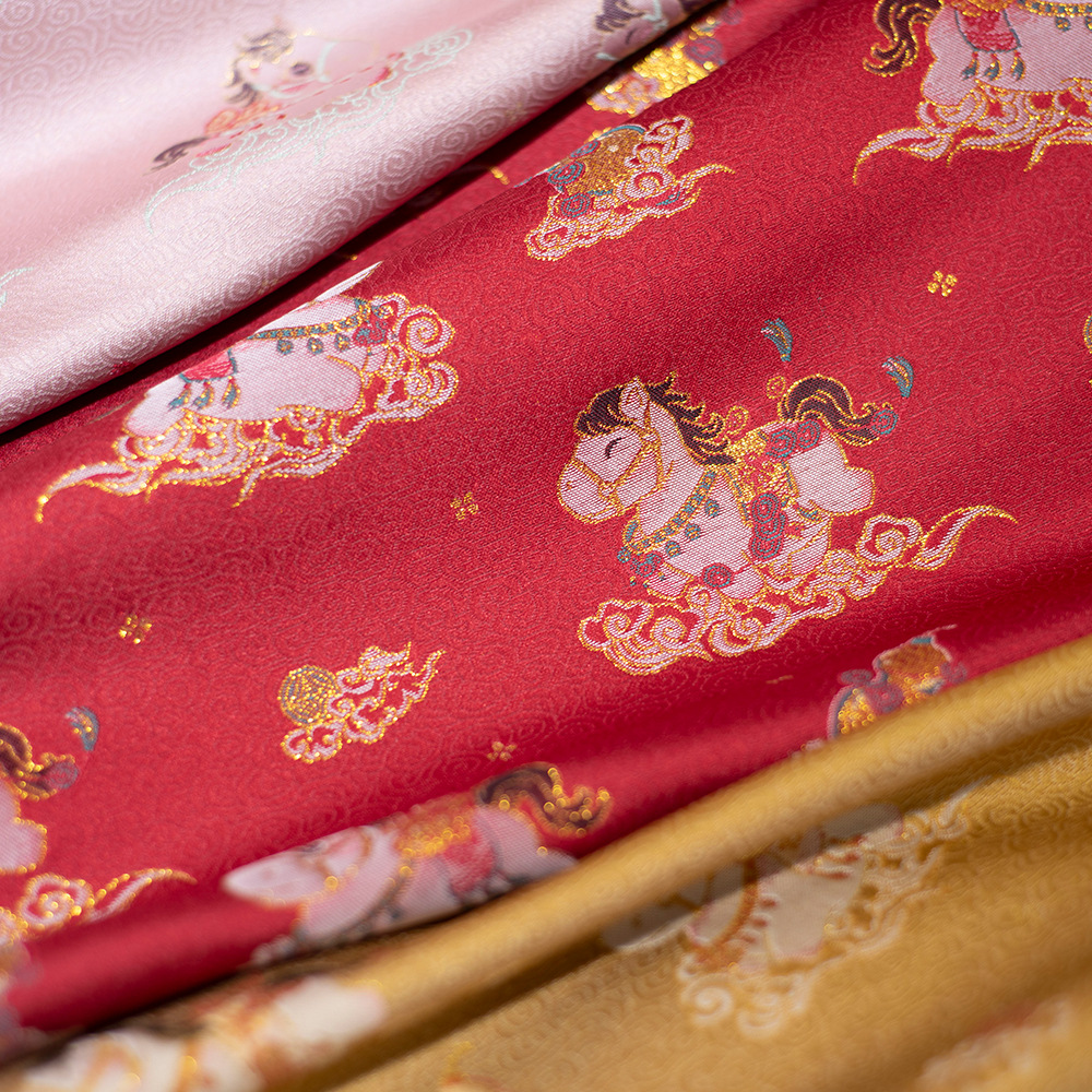 马上来财儿童卡通中国风复古风汉服装布料面料金线提花色织仿宋锦