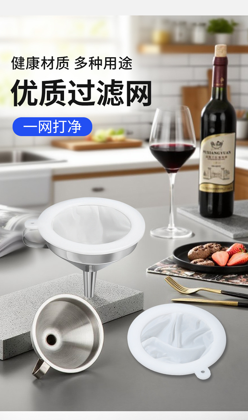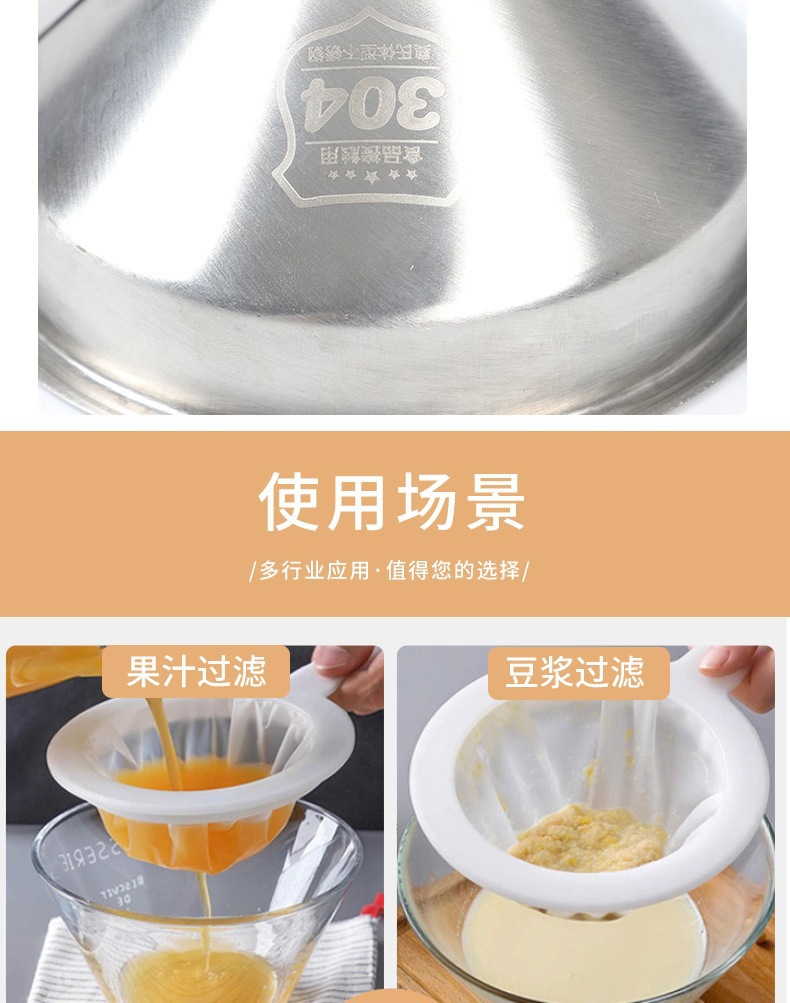 304不锈钢漏斗厨房工具家用牛奶豆浆白酒果汁过滤网筛酒漏批代发