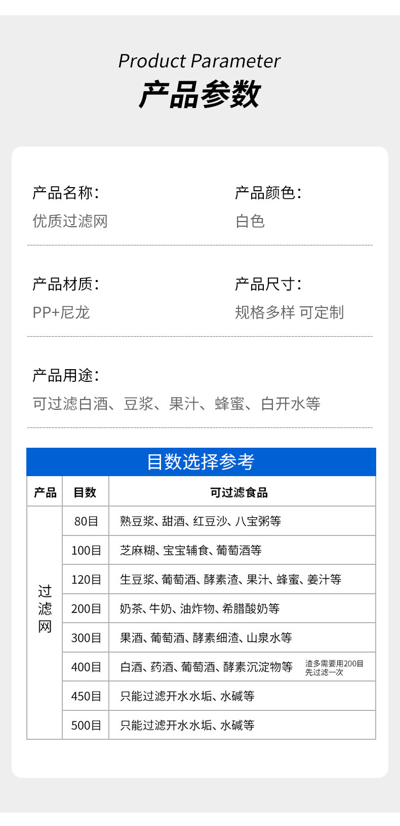 规格 13CM过滤盘100-200目【豆浆 果汁 中药等粗糙较多】,13CM过滤盘300目【酵素 葡萄酒 米酒等】,13CM过滤盘400目【山泉水 白酒等】,13CM过滤盘450目【只能过滤开水水垢 水碱】,15CM过滤盘100-200目【豆浆 果汁 中药等粗糙较多】,15CM过滤盘300目【酵素 葡萄酒 米酒等】,15CM过滤盘400目【白酒 山泉水等】,15CM过滤盘450目【只能过滤开水水垢 水碱】,304不锈钢中号漏斗13CM【可跟13CM过滤盘搭配】,304不锈钢大号漏斗15CM【可跟15CM过滤盘搭配】,304不锈钢中号漏斗13CM+13CM过滤盘400目1个【送压榨棒】,304不锈钢大号漏斗15CM+15CM过滤盘400目1个【送压榨棒】