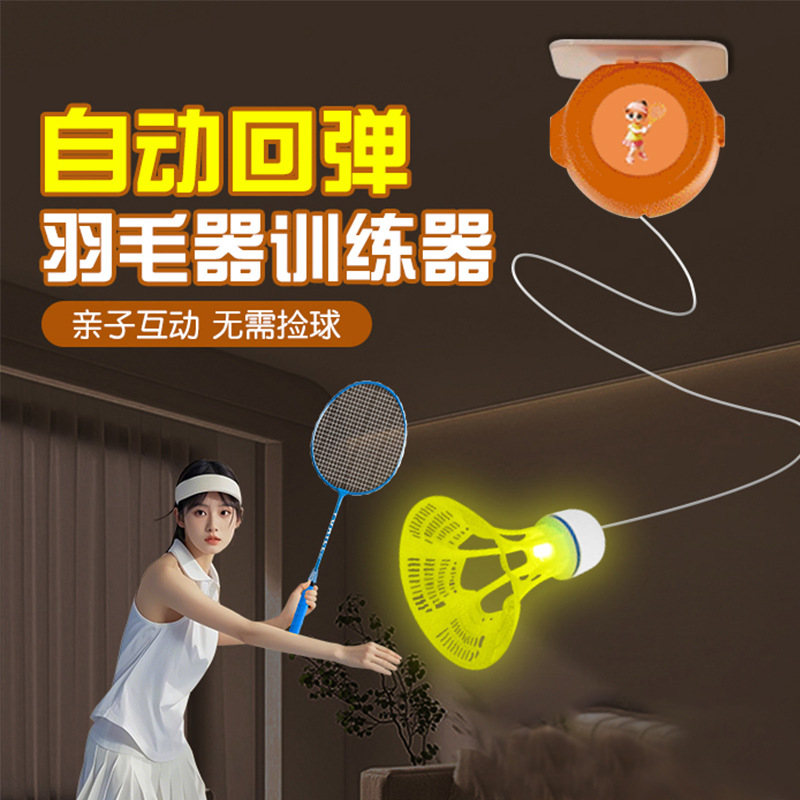 羽毛球训练器亲子互动夜光球无需捡球自动回弹可调节乳胶弹力绳