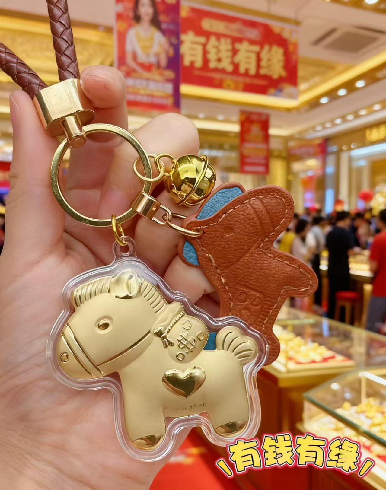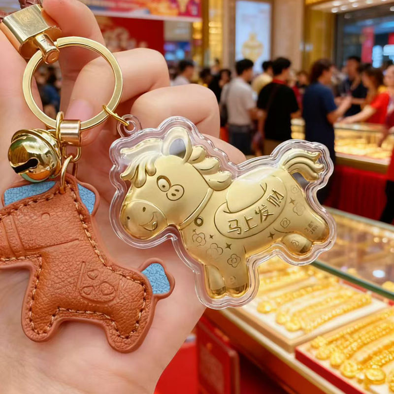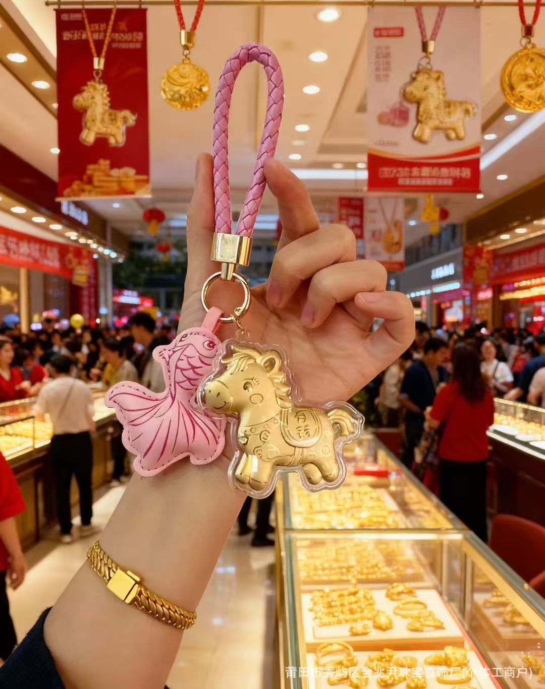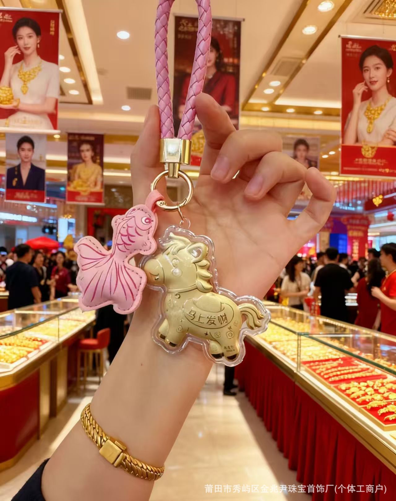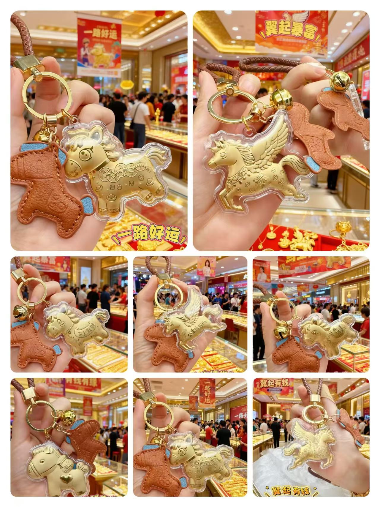 马年黄金小马钥匙扣马上有钱飞马发财挂饰水贝足金手机挂件小礼品