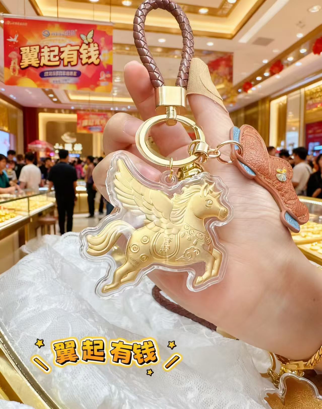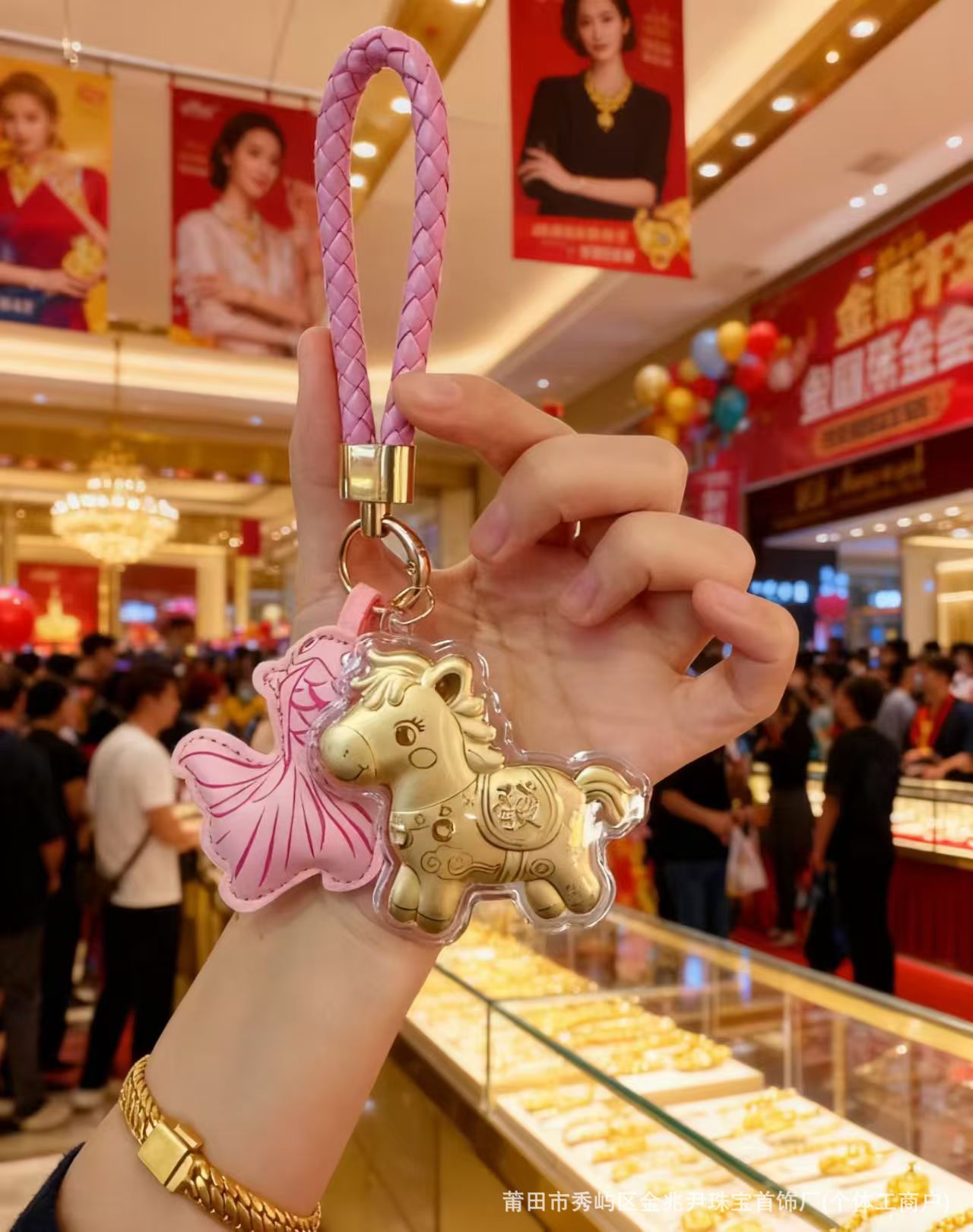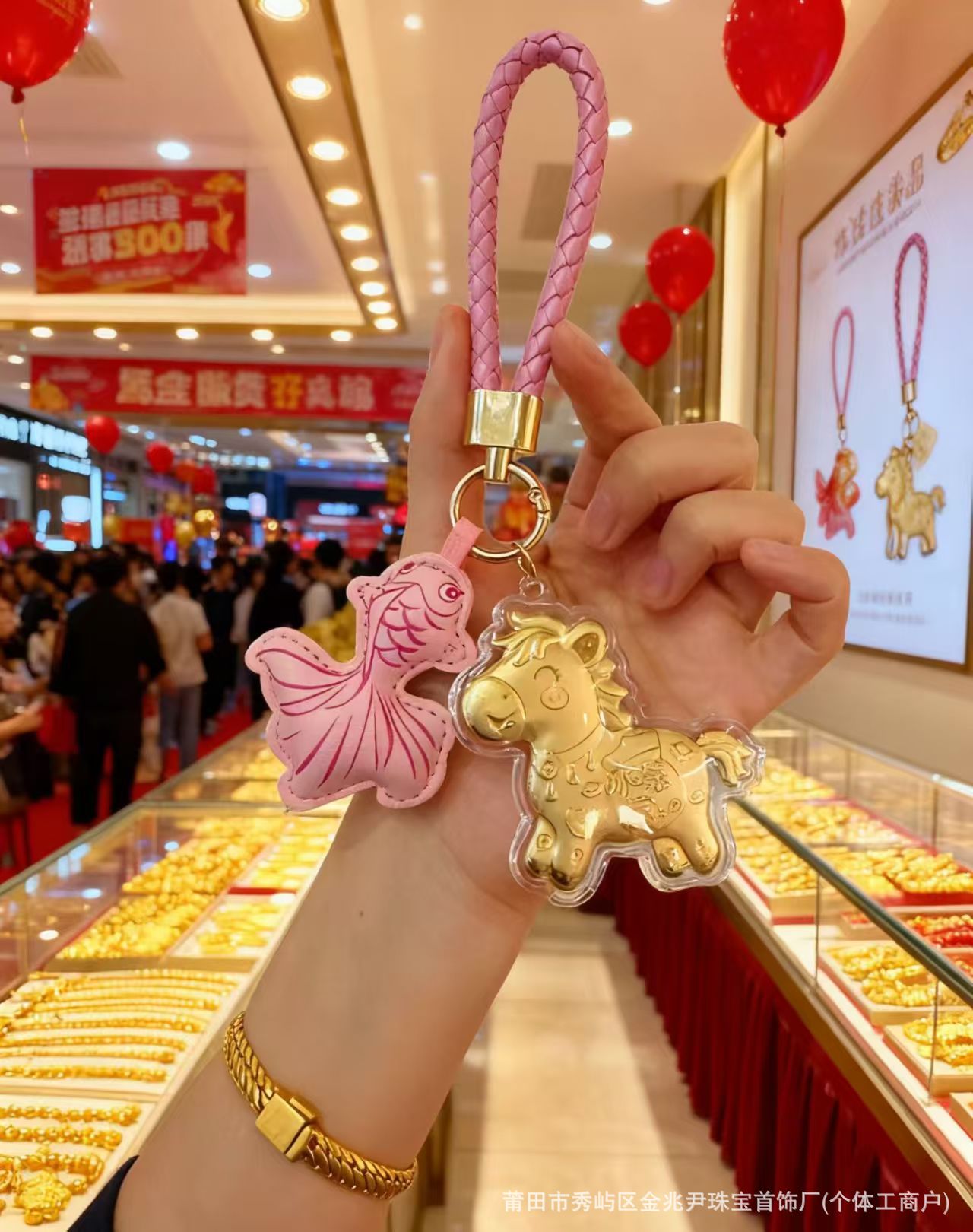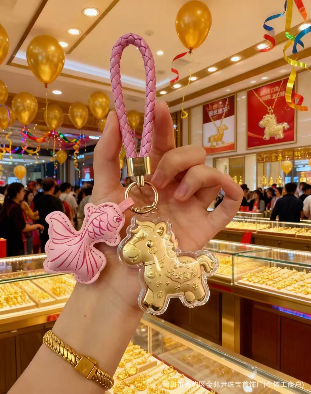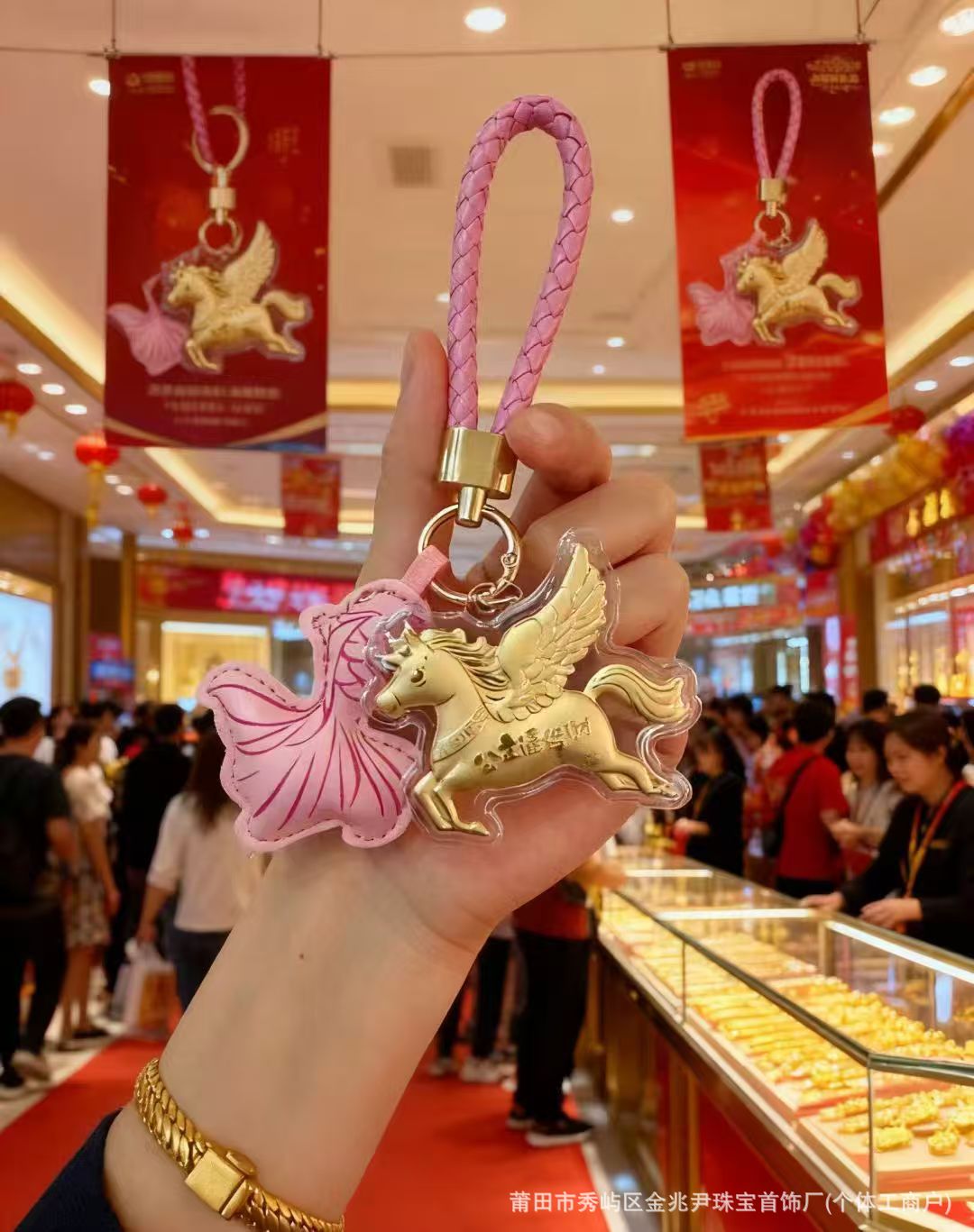 马年黄金小马钥匙扣马上有钱飞马发财挂饰水贝足金手机挂件小礼品