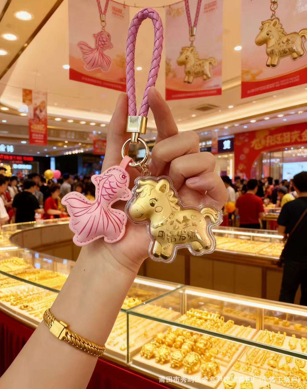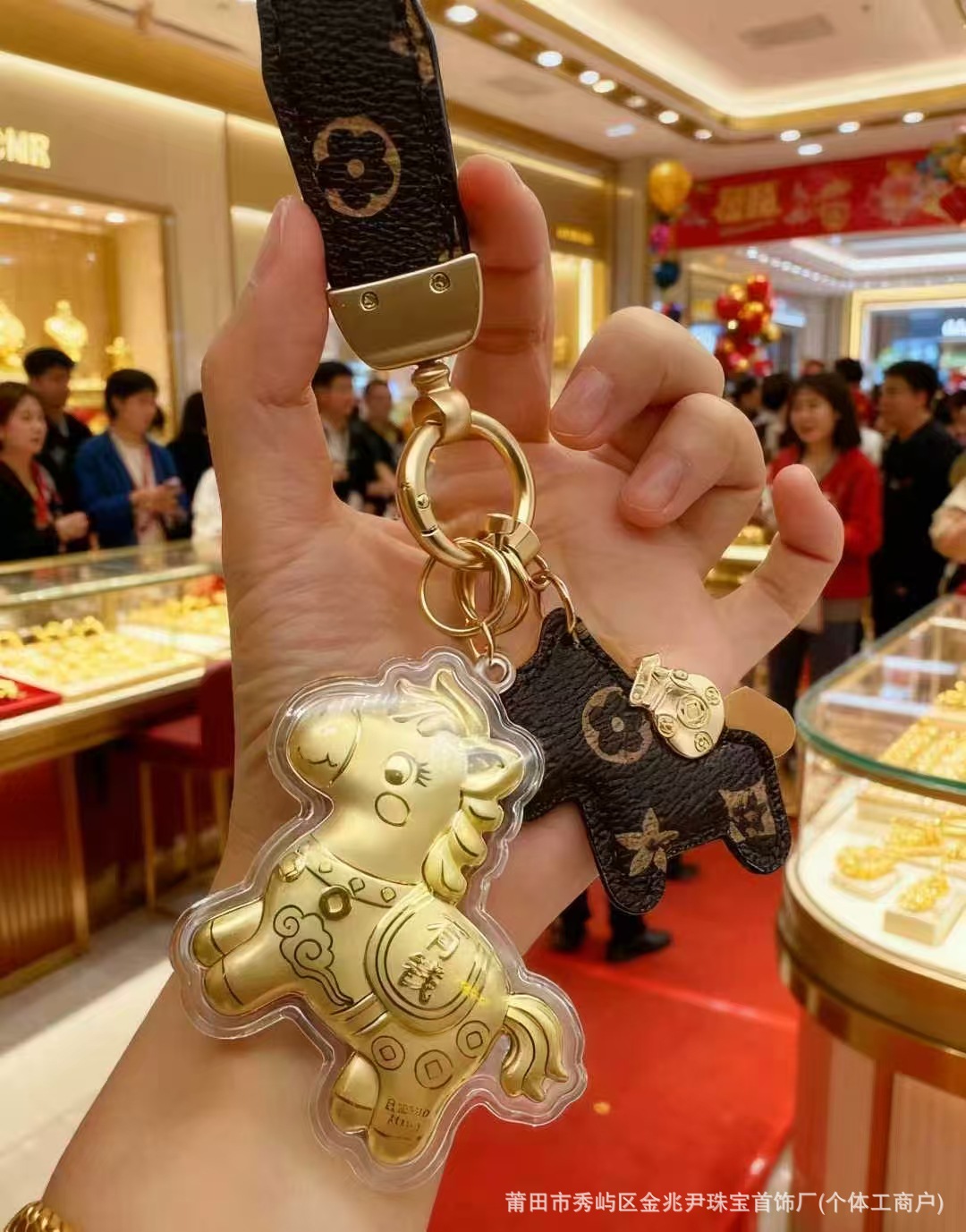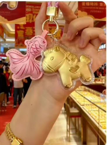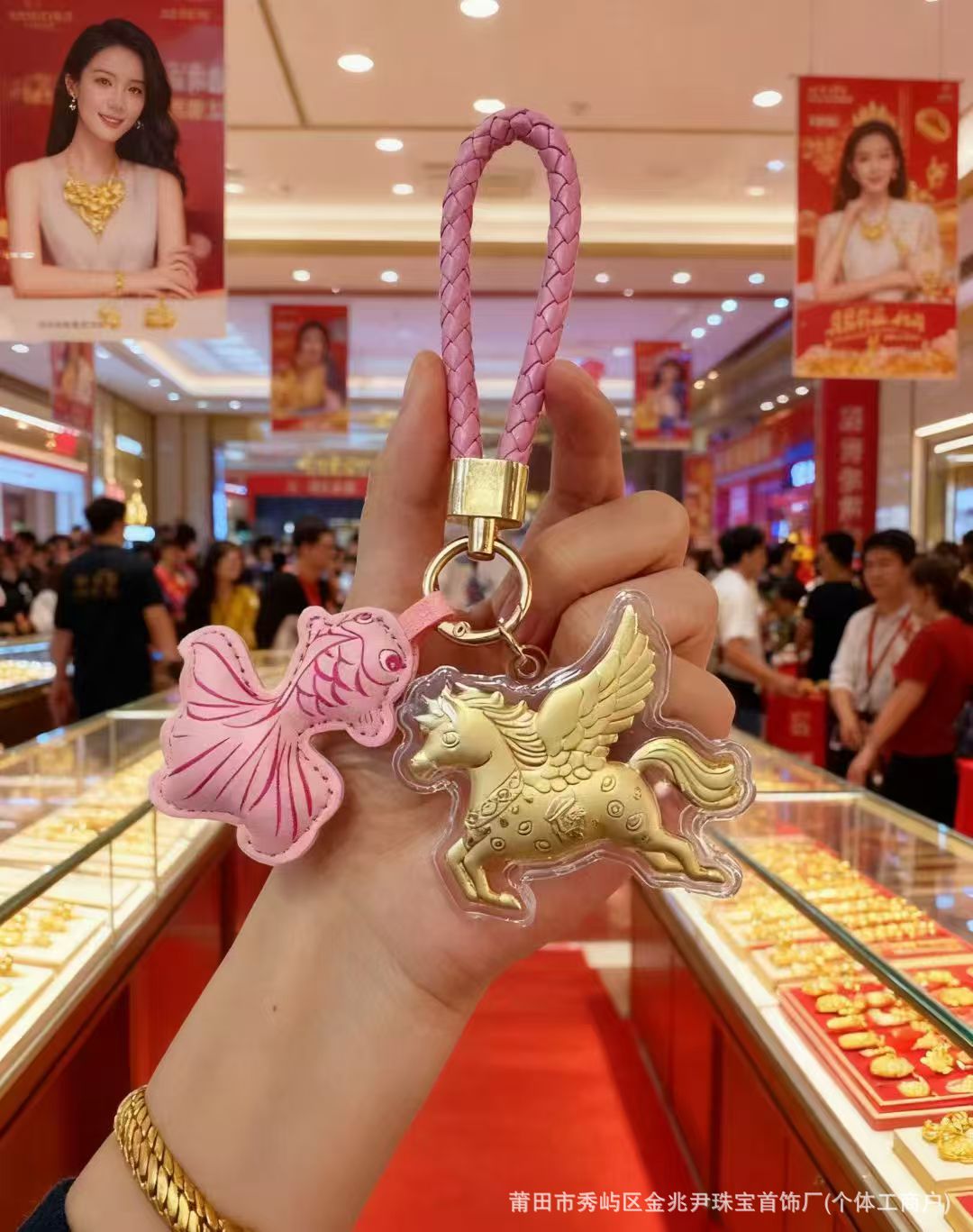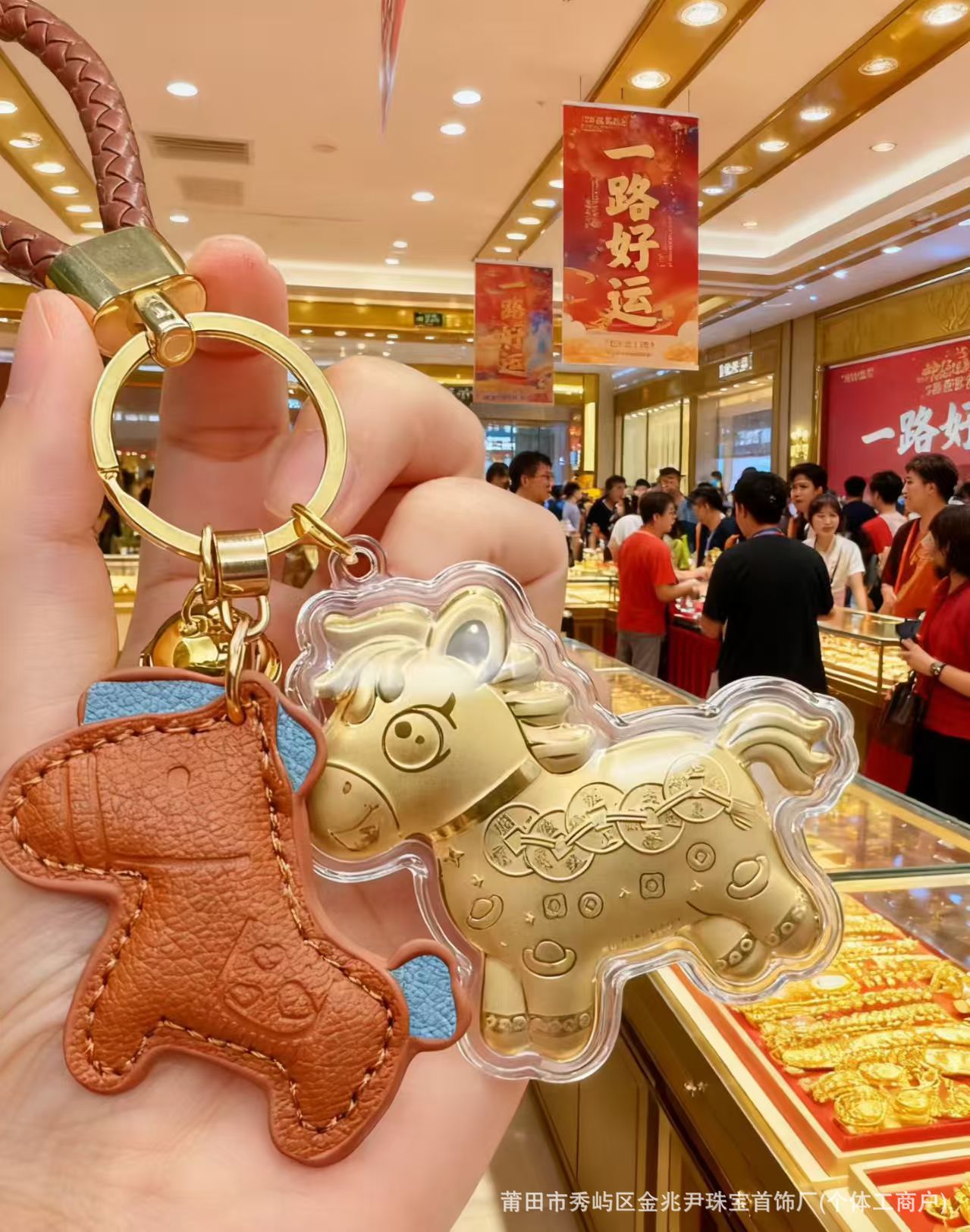 马年黄金小马钥匙扣马上有钱飞马发财挂饰水贝足金手机挂件小礼品