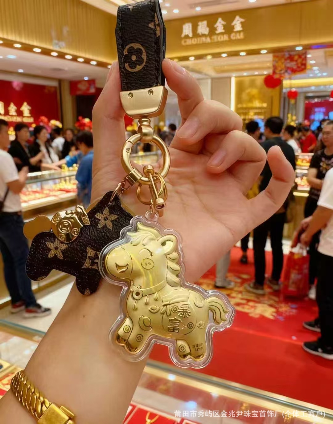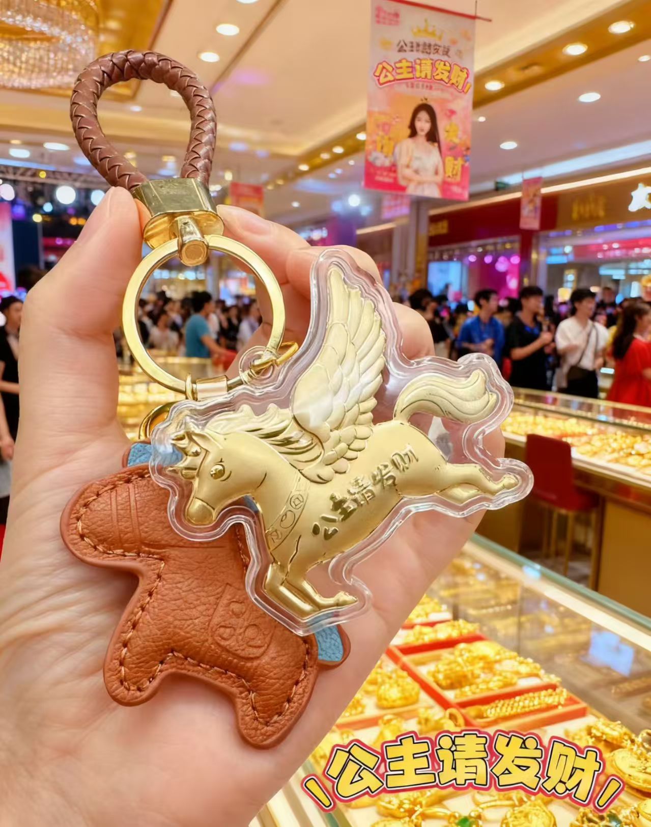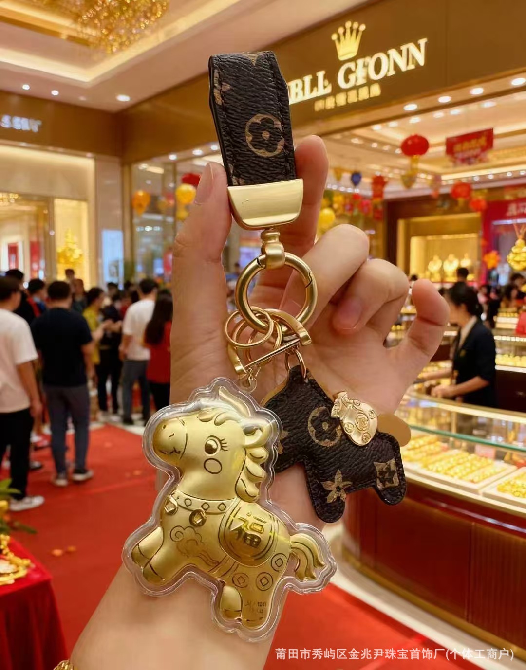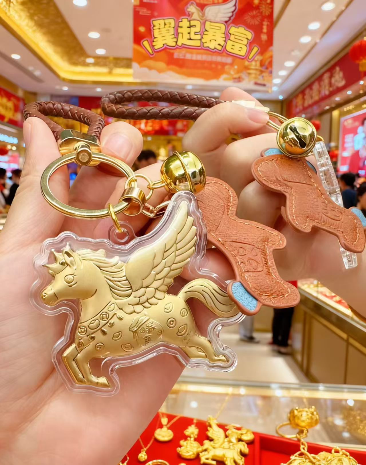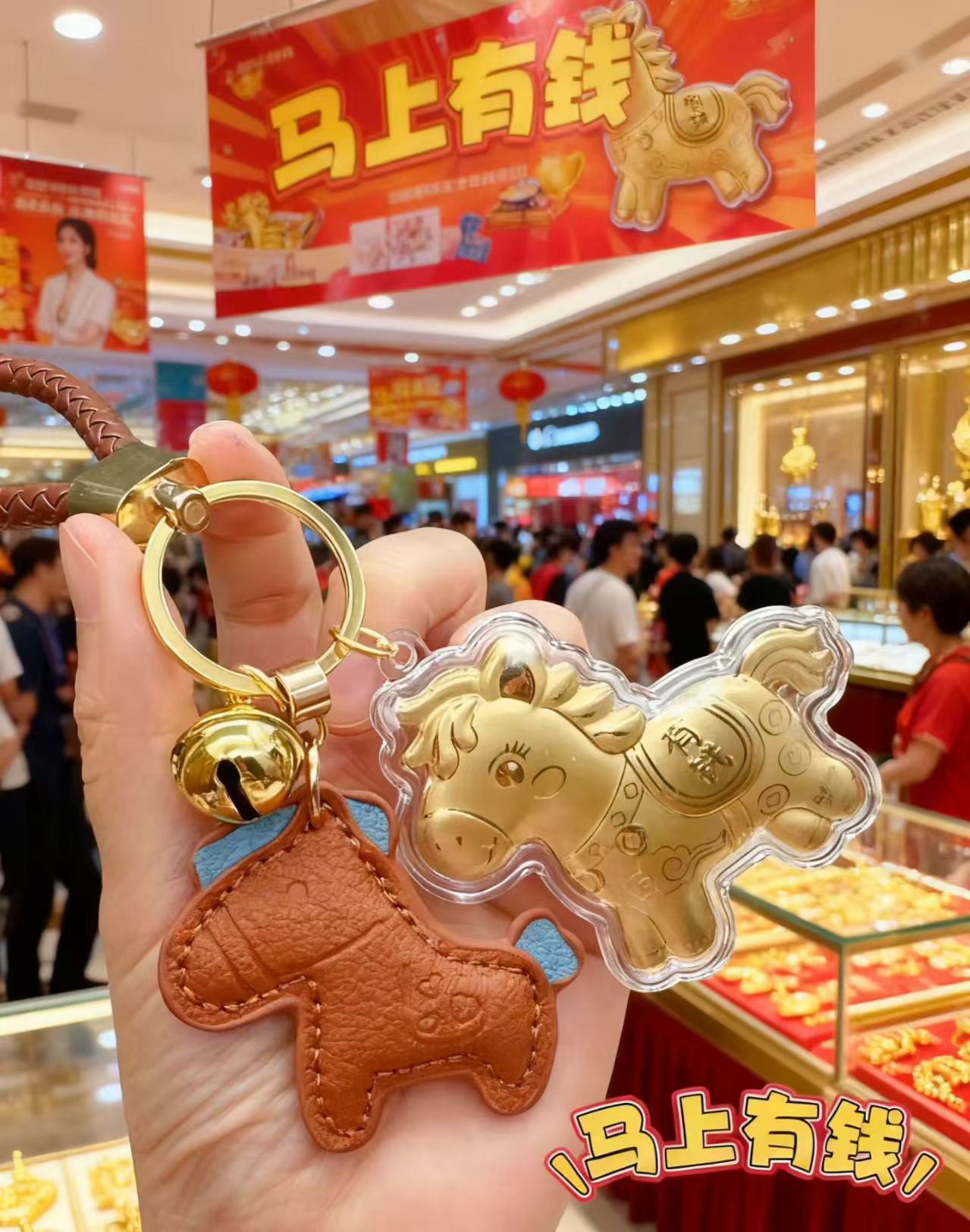 马年黄金小马钥匙扣马上有钱飞马发财挂饰水贝足金手机挂件小礼品
