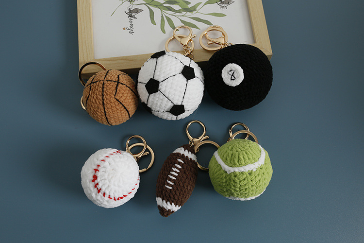 新款绒线钩织球类挂件 钩线足球包挂饰 篮球网球橄榄球包挂成品