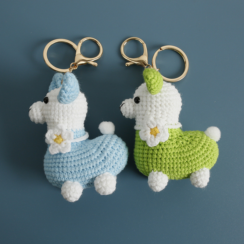 跨境热销背花羊驼挂件 毛线钩织动物挂件 可爱小羊钥匙扣成品