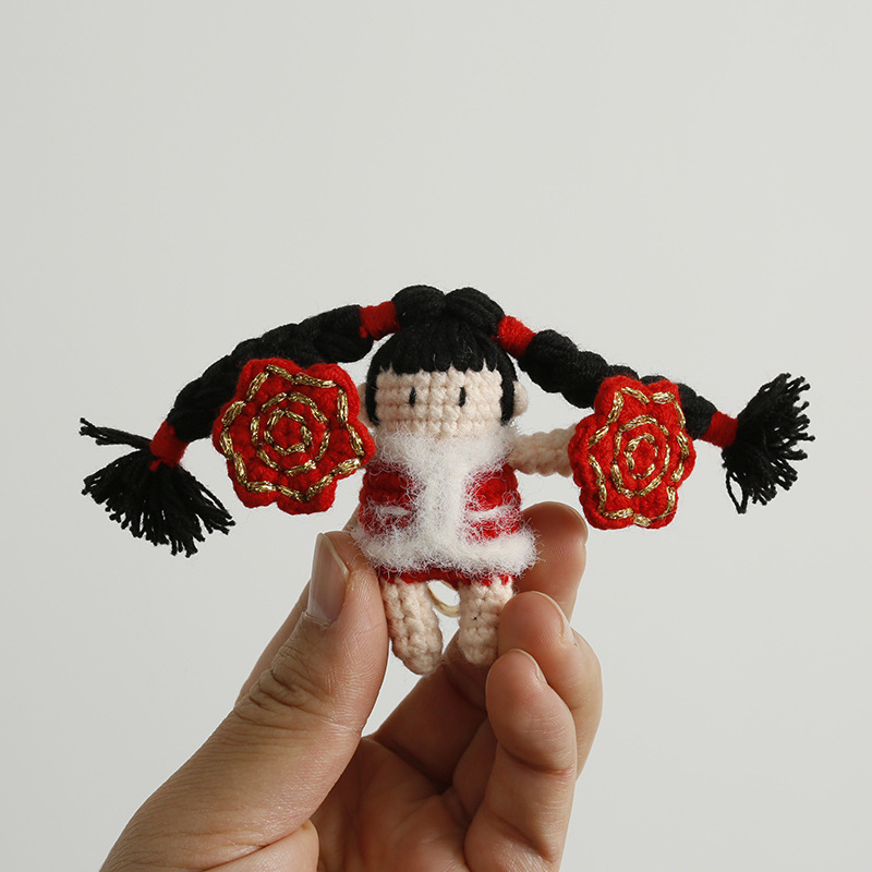 超萌卡通手绢大辫子女孩玩偶 毛线钩织娃娃钥匙扣 可爱小女孩挂件