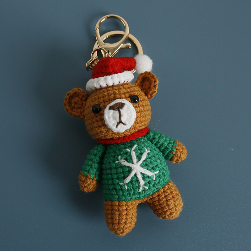 新款手工编织圣诞小熊挂件 毛线钩织圣诞节棕熊挂饰 可爱熊包挂