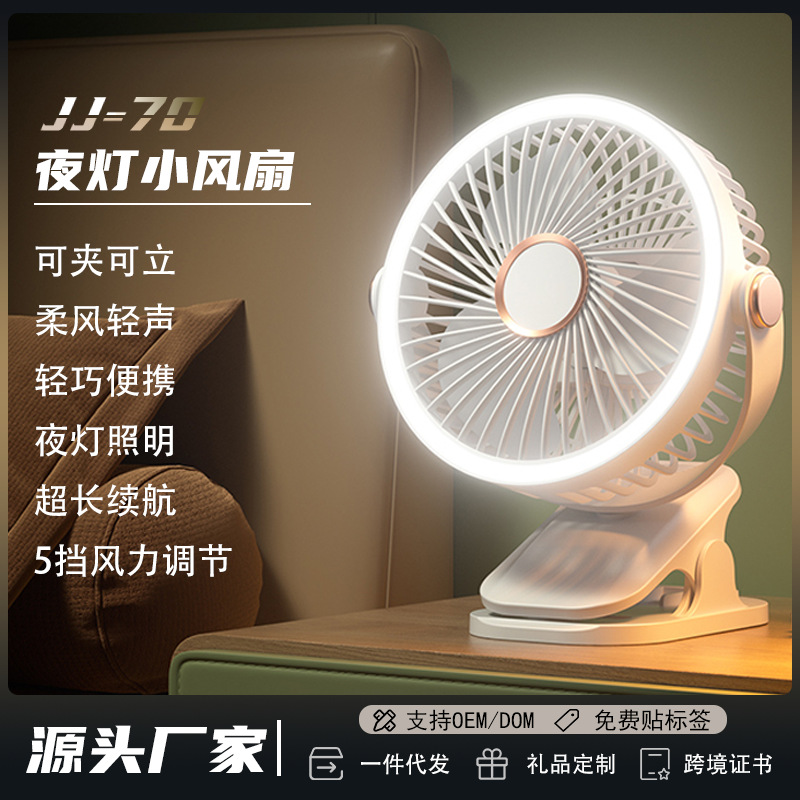 ホームデスクトップクリップファンポータブル充電式ナイトライトファン寮オフィスデスクトップUSB小型ファン