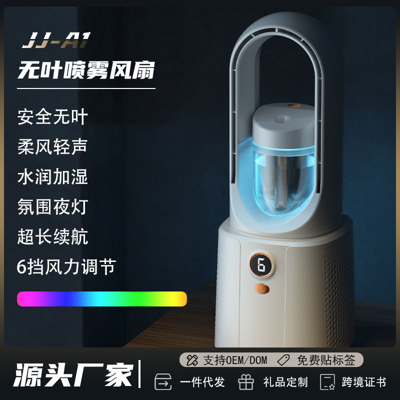 噴霧無葉ファンデスクトップ小ファン家庭用オフィス空調ファン携帯型夜灯加湿USBファン