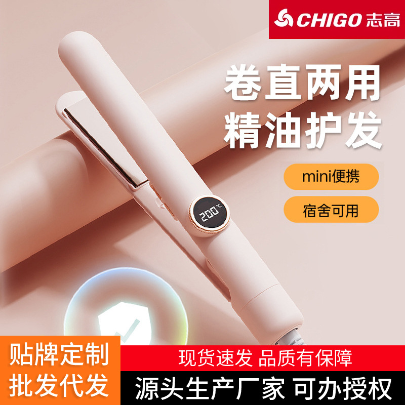 Chigo スプリントヘアアイロンデジタルディスプレイカーリングとストレート両用スタイリングマイナスイオン小型ポータブルストレートプレートクリップ女性ヘアアイロン