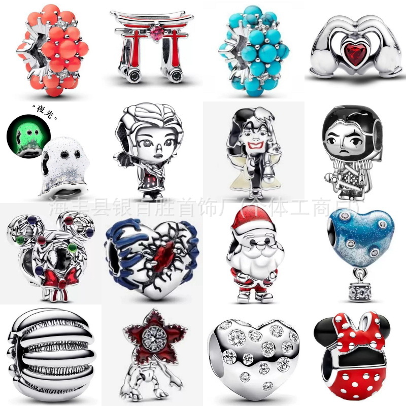 S925纯银2025新款串珠圣诞主题夜光珠子DIY大孔搭配蛇骨链可爱款