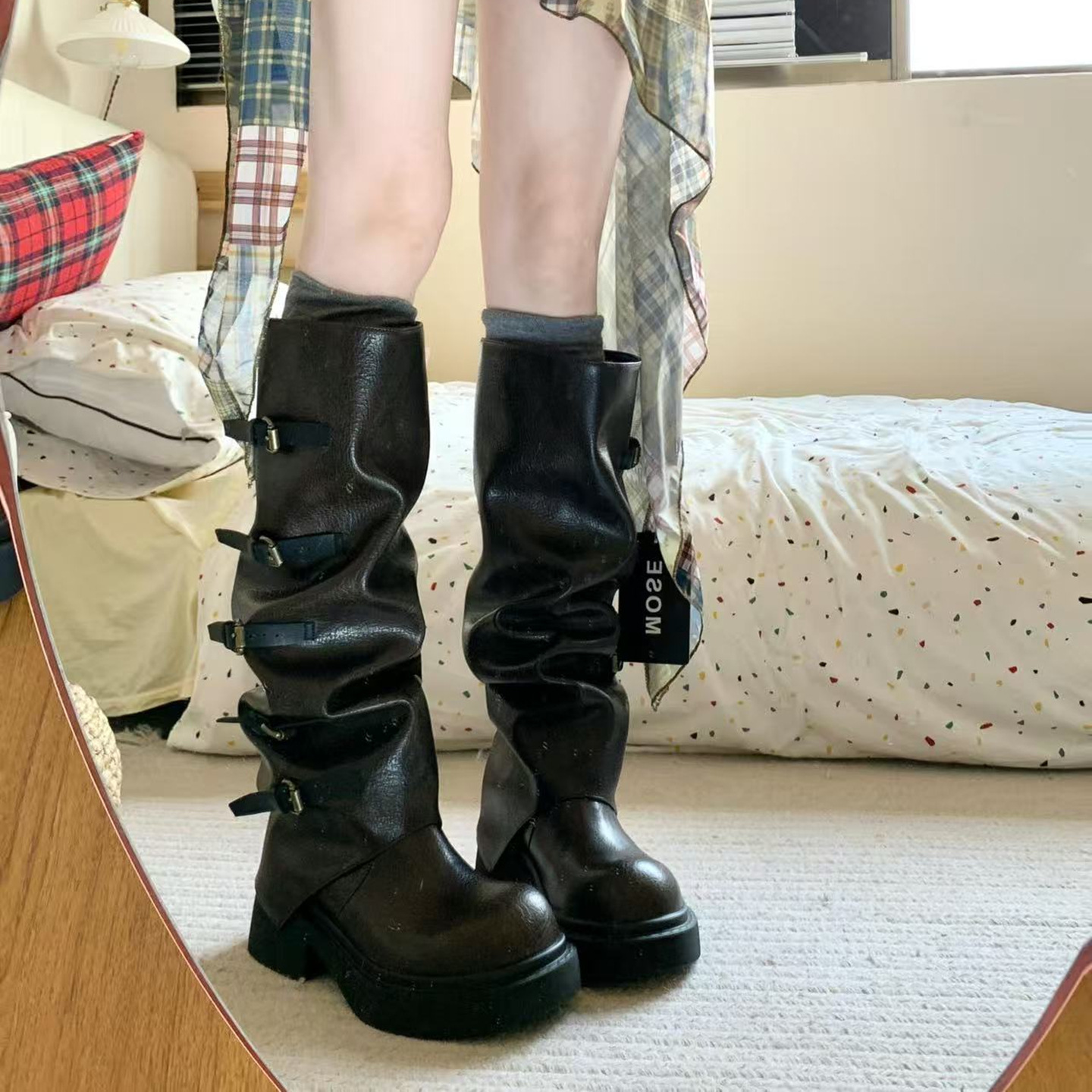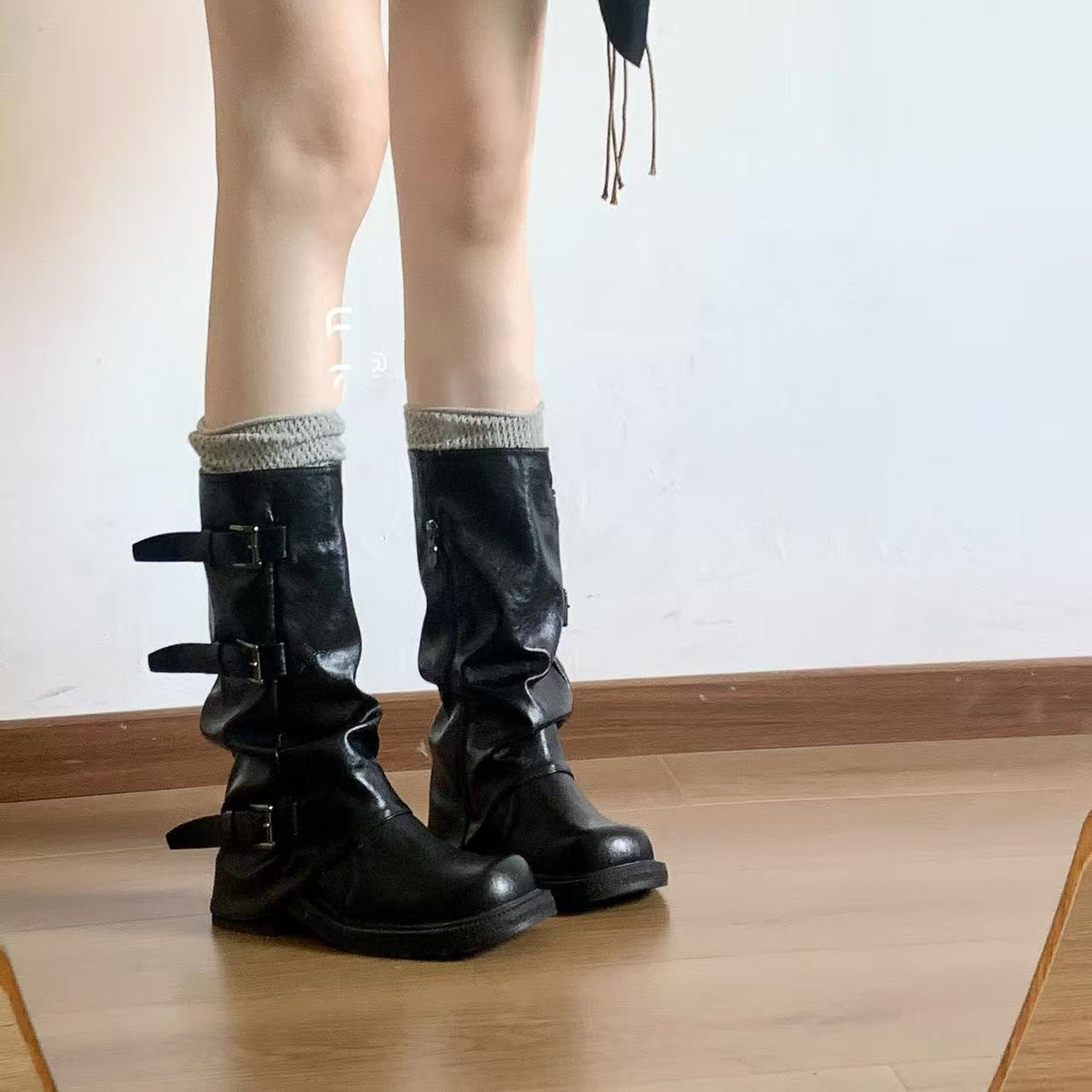 パンクウェイストランドスタイルノーニーブーツレディースハイライダーブーツレトロパイルブーツパンツブーツメイラードブーツ
