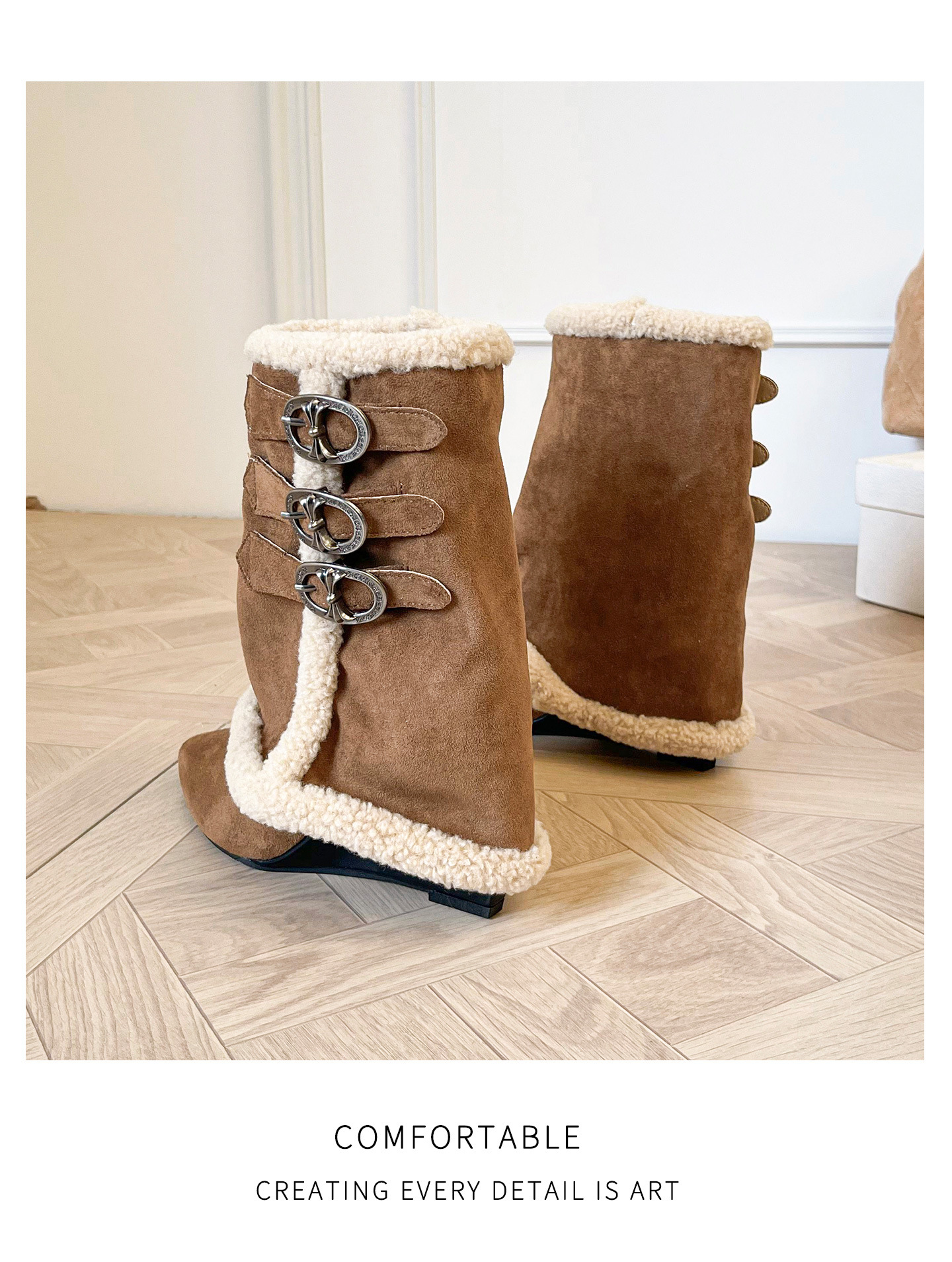 【梵芙娜】增高美拉德雪地靴2025冬新款皮带扣加绒保暖裤管骑士靴