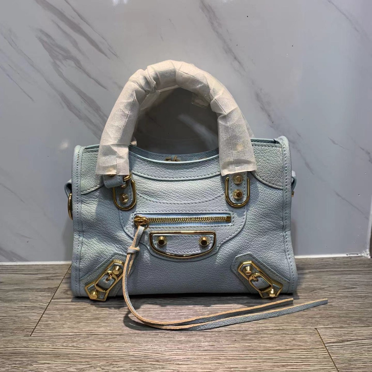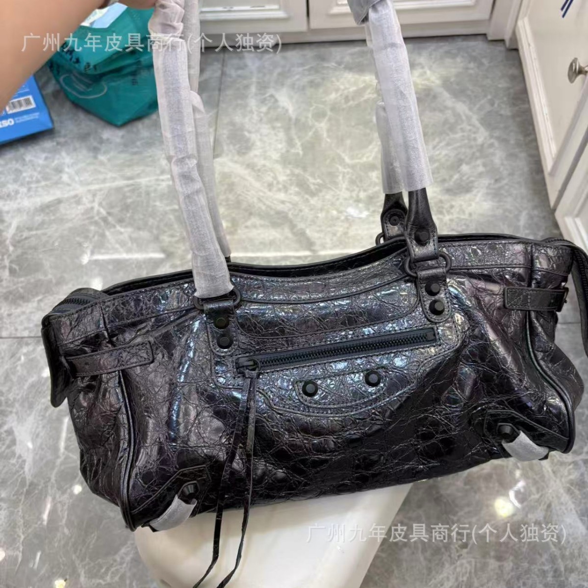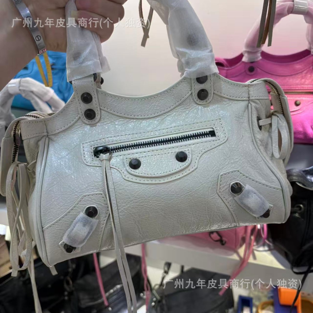 25新款B家Le city女包机车包酷飒辣妹复古铆钉包油蜡皮手提斜挎包