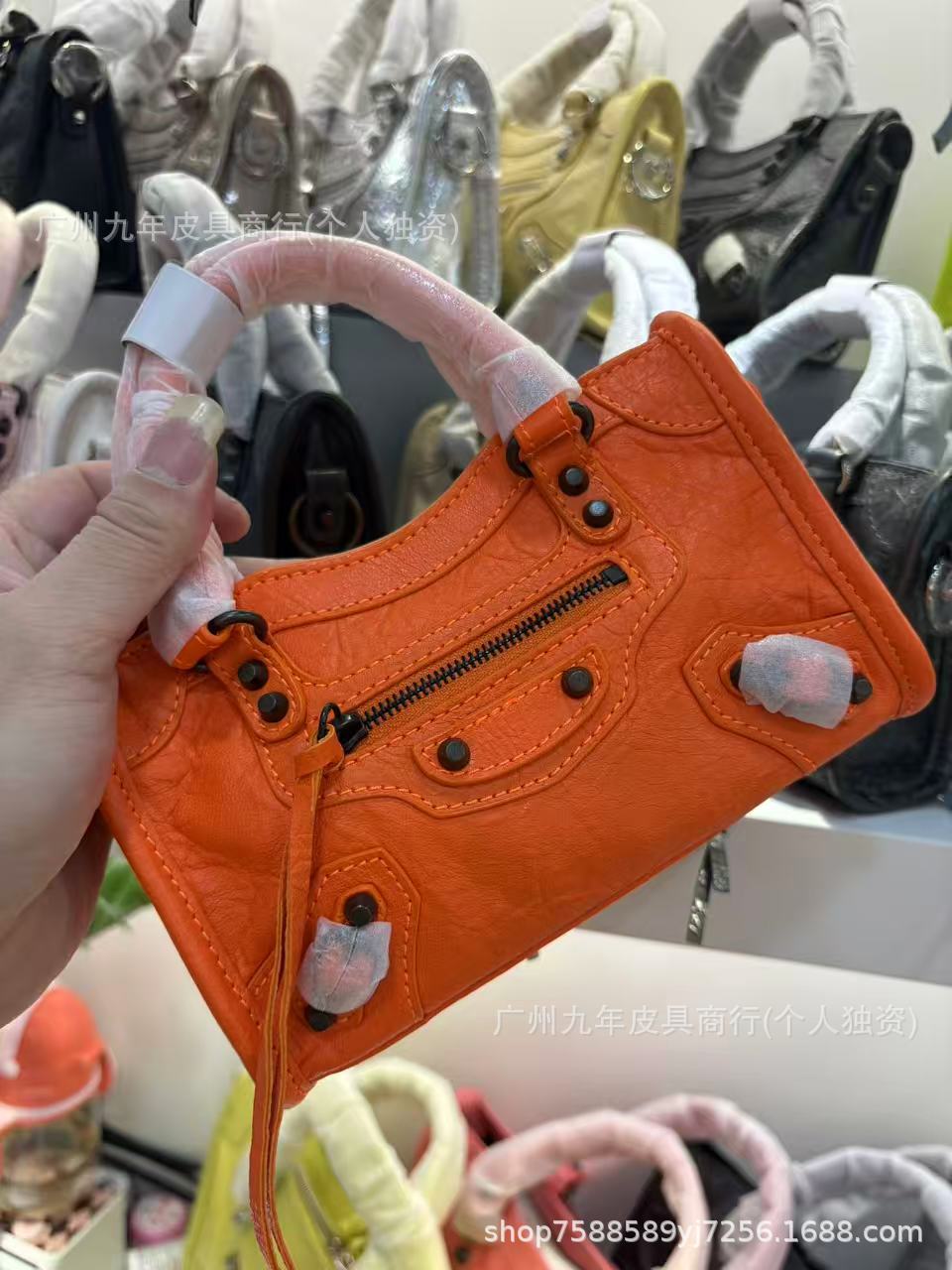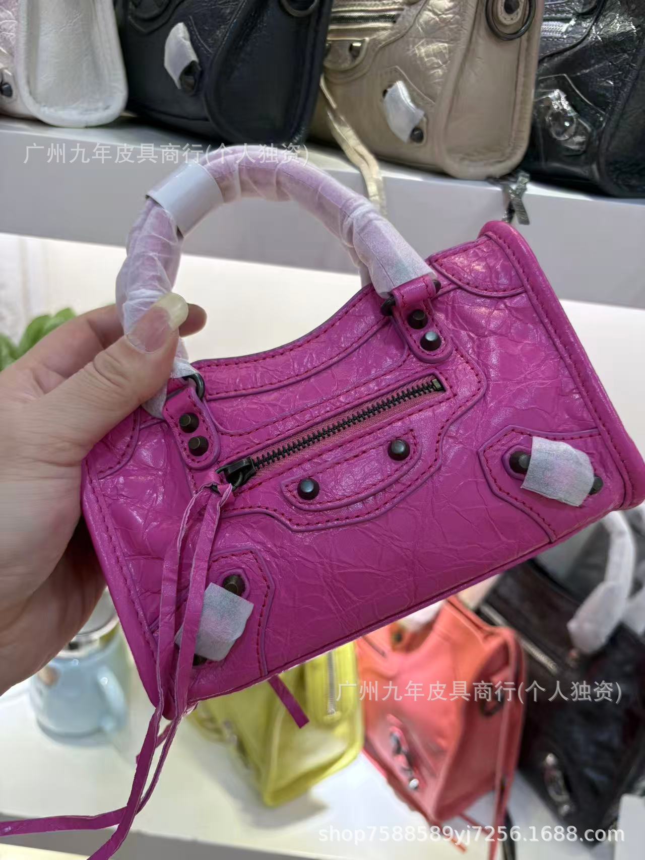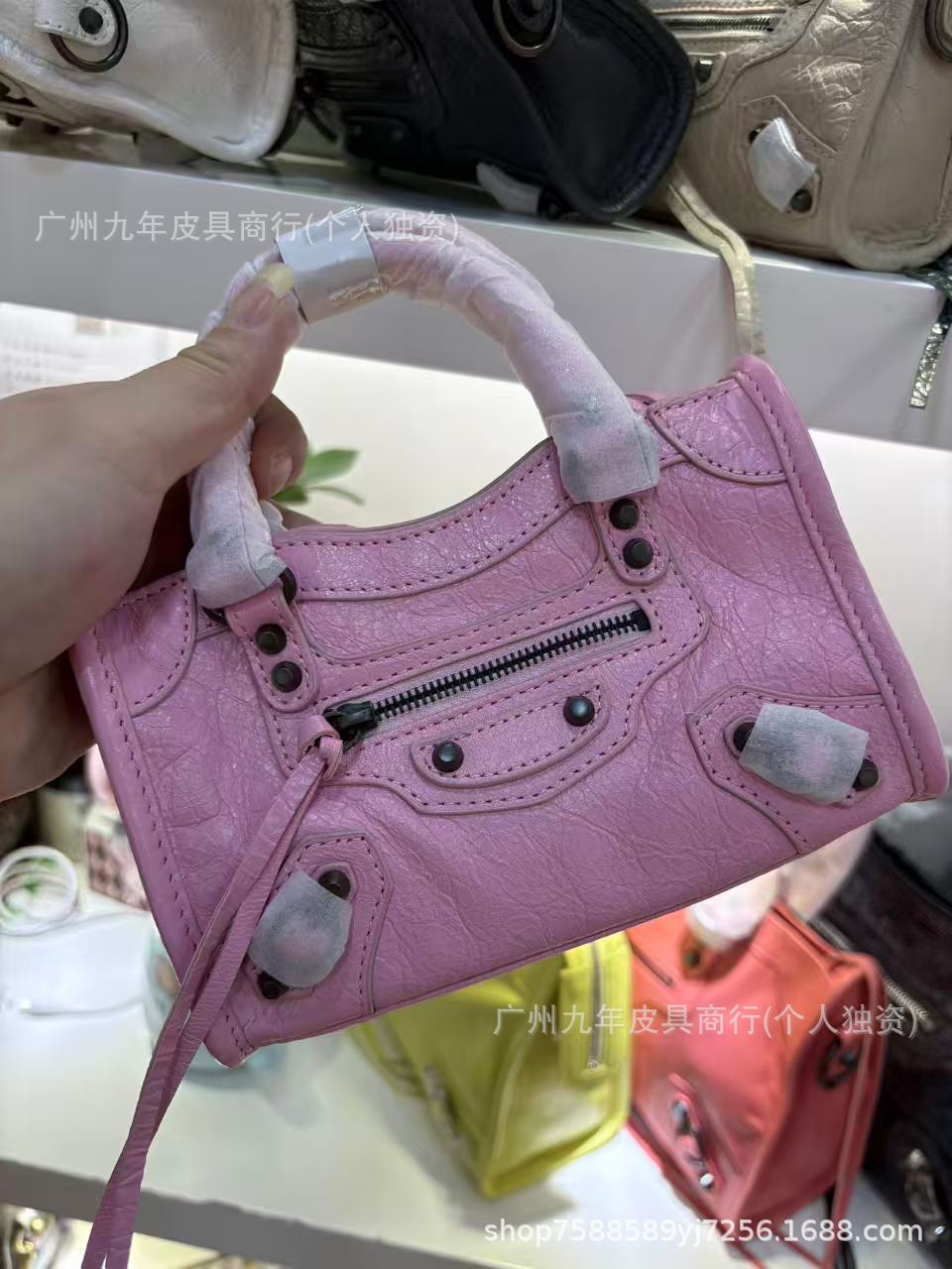 2025年超迷你mini经典杀手包柳钉机车包山羊皮纹手提包单肩斜挎包