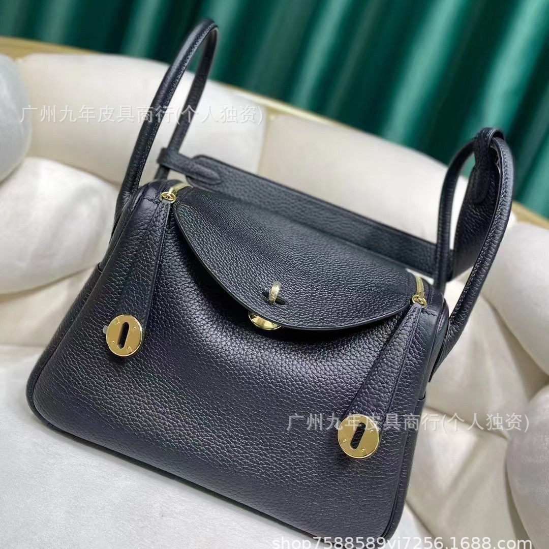 リンディ26手作りワックス糸 一層牛革(トゴ牛革)高級ハンドバッグ 脇下バッグ ショルダーバッグ ドクターバッグ