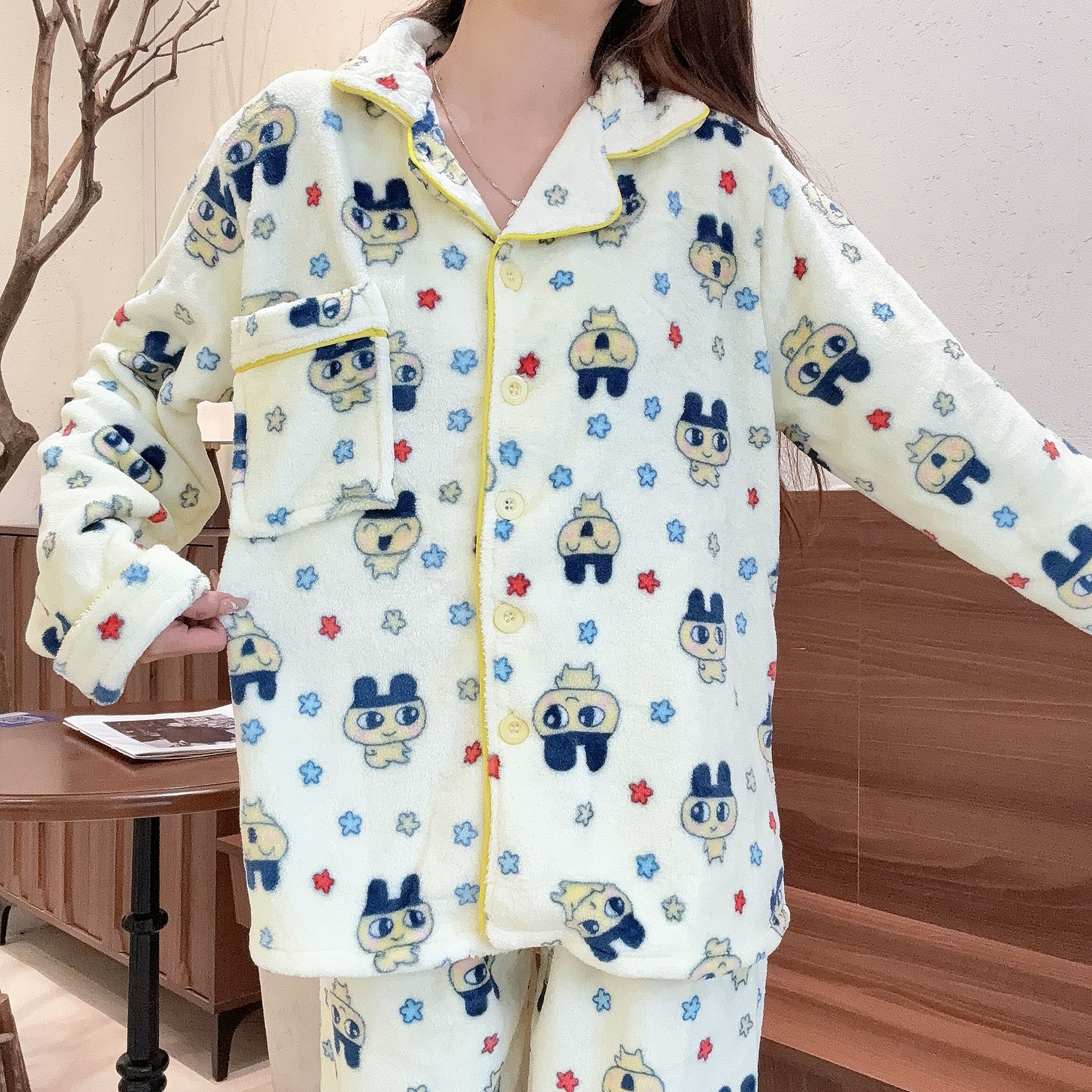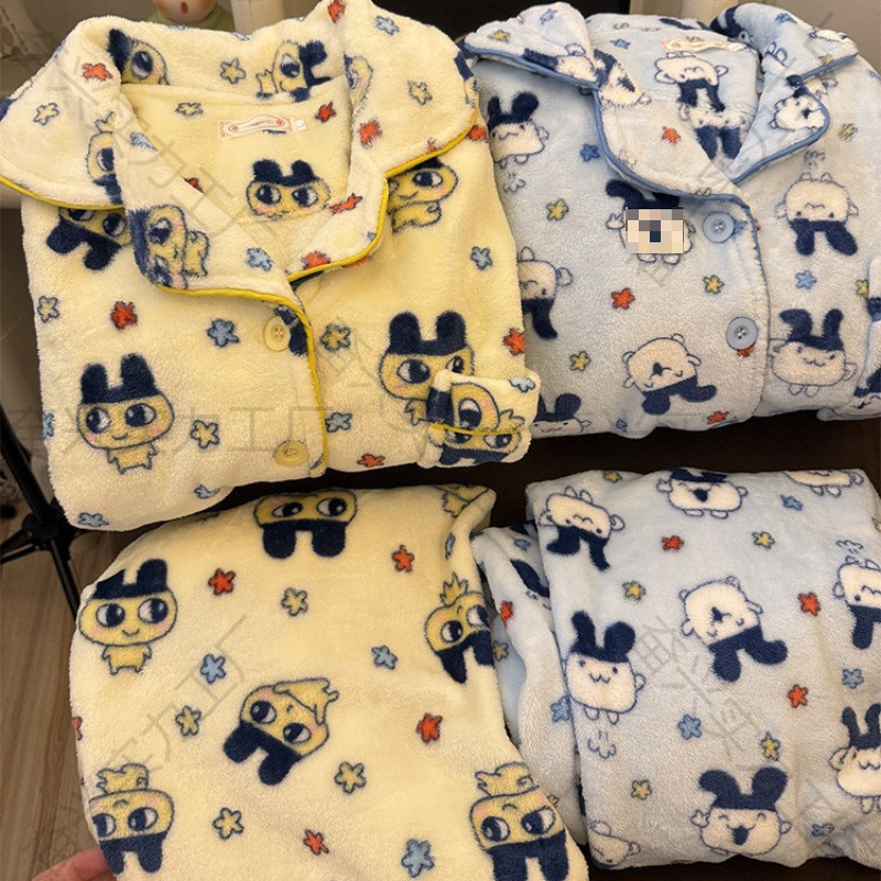 日系卡通拓麻歌子德绒睡衣女款2025秋冬保暖长袖加厚可外穿家居服