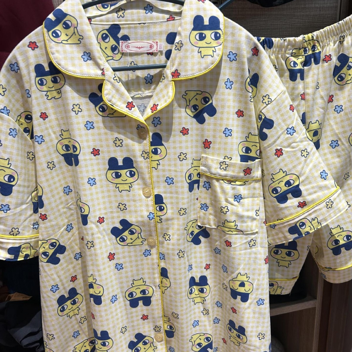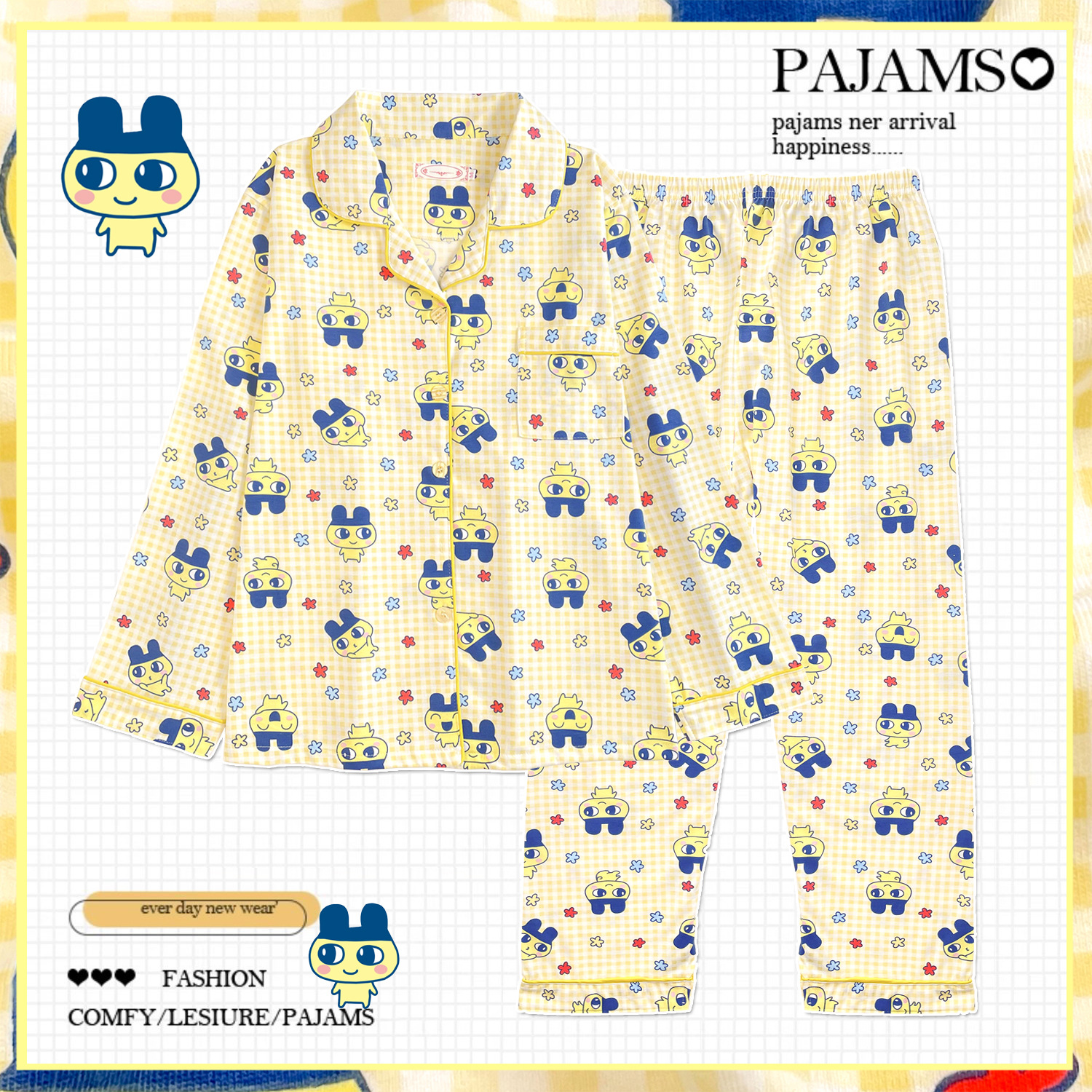 拓麻歌子卡通睡衣女春秋款长袖纯棉日系可爱麻美吉黄色格子家居服