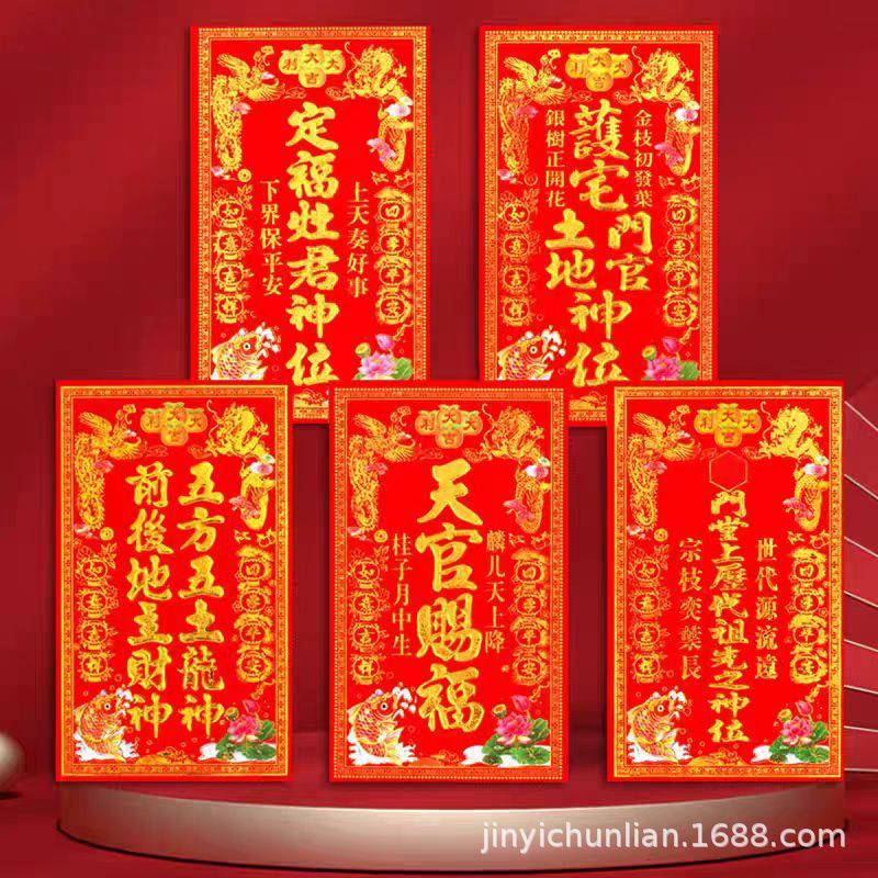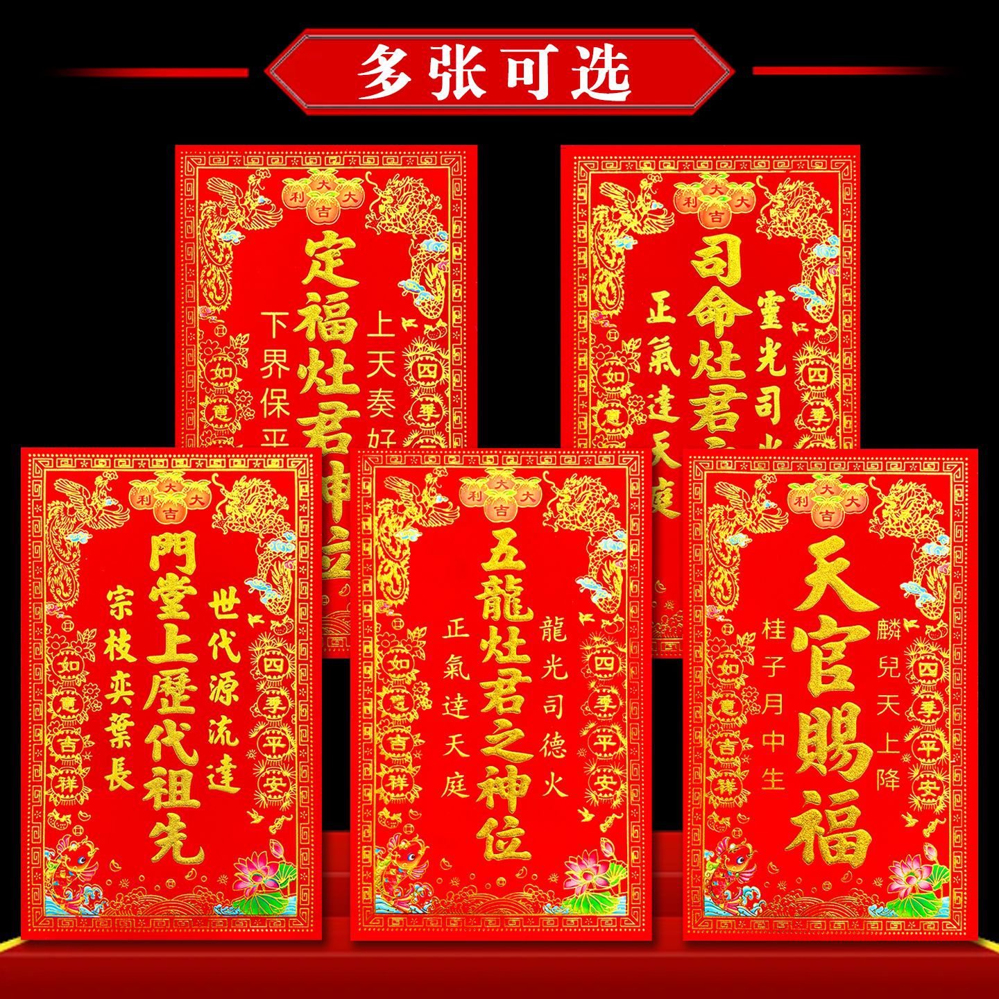 高档大气丝绒灶君神位门口土地财神五方龙神天官赐福祖先门贴批发