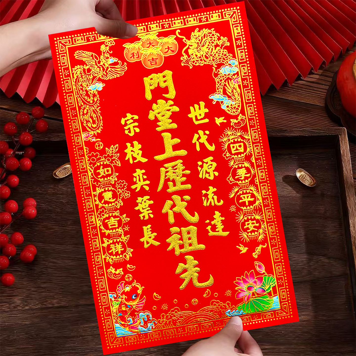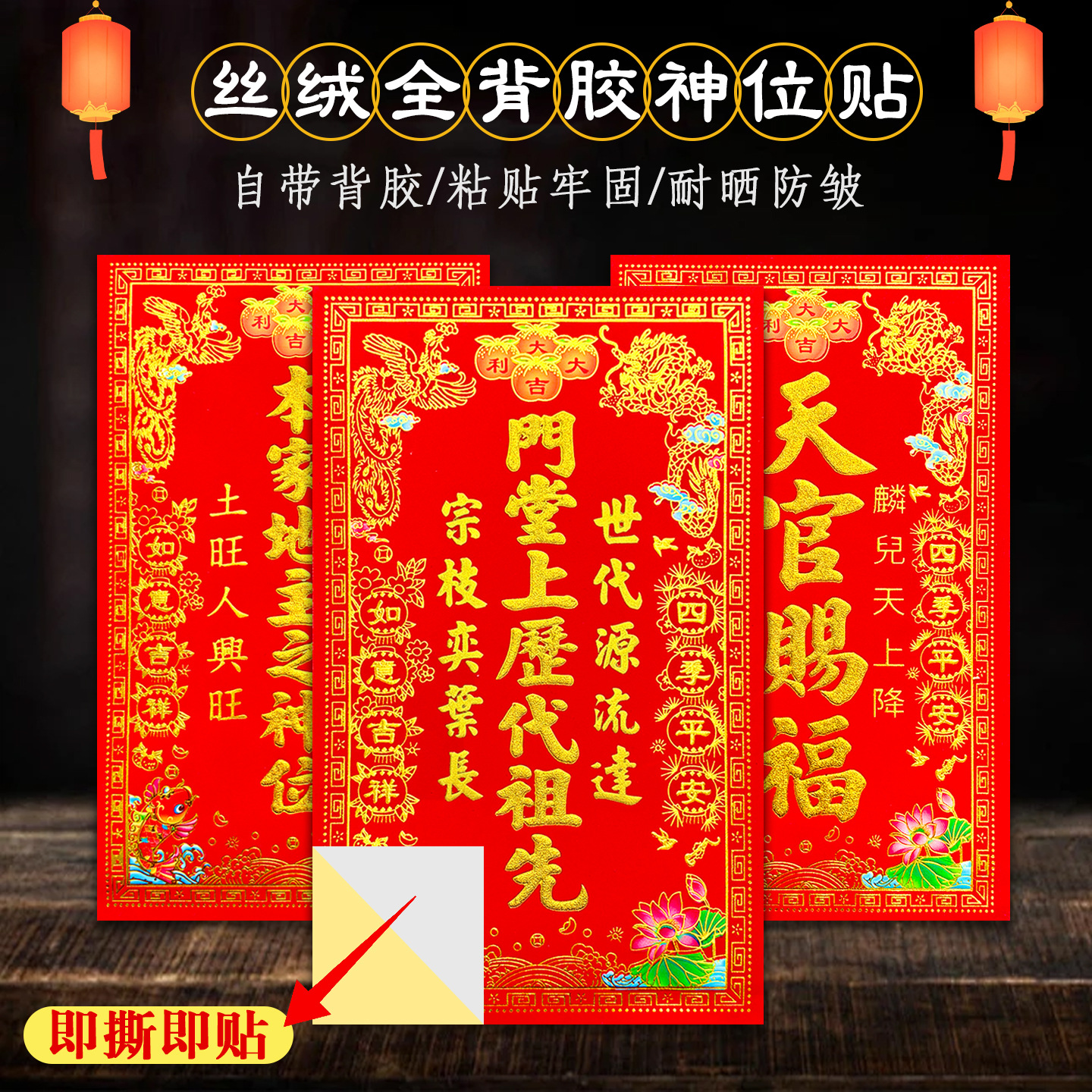 2026年新作 ベルベット製粘着式 神位 天官賜福 玄関 土地財神 祖先 祝福 炊飯神 新年飾り