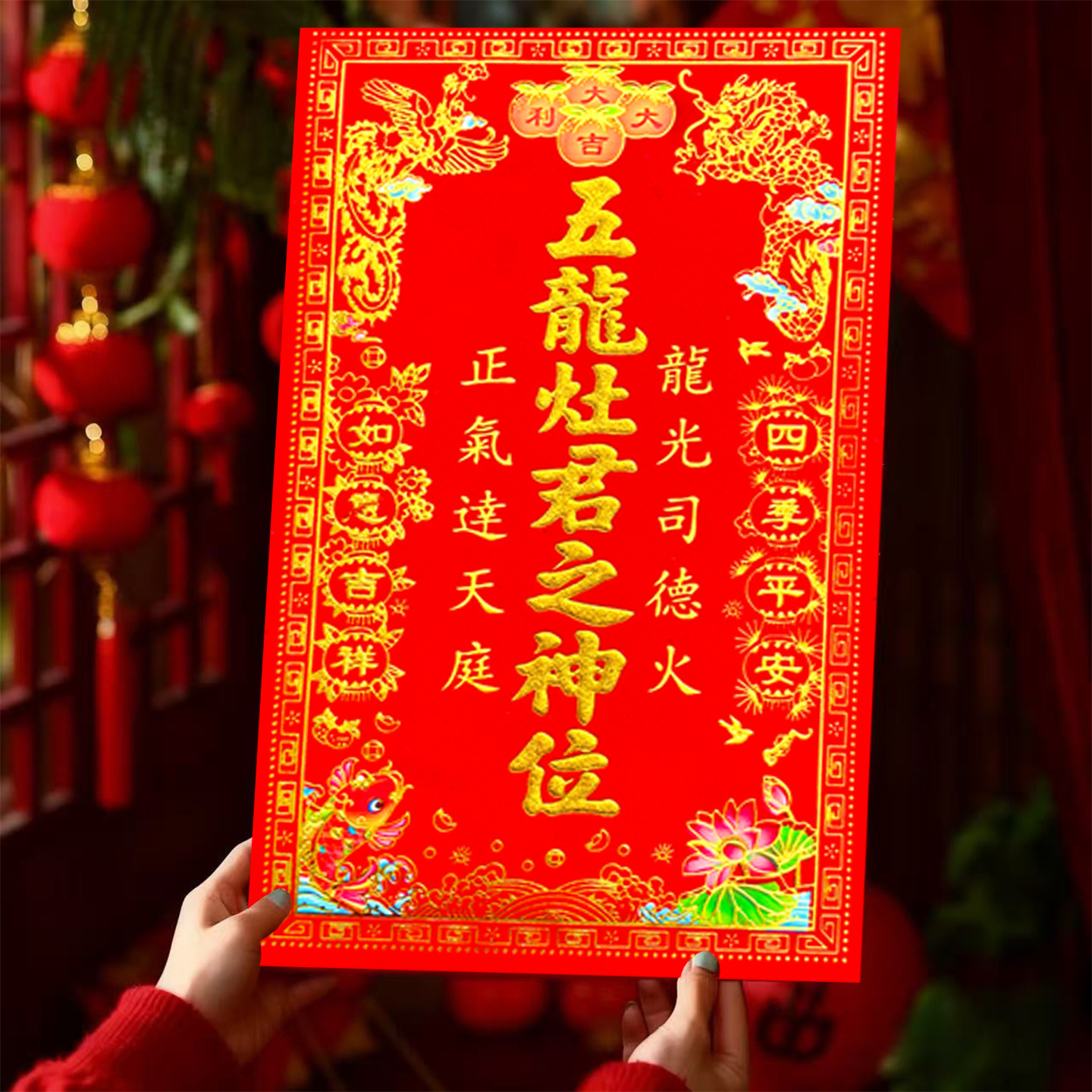 2026年馬年用フリース製粘着式灶神神位、玄関用土地神、財神、五方龍天官、祝福文字入りドアステッカー、卸売