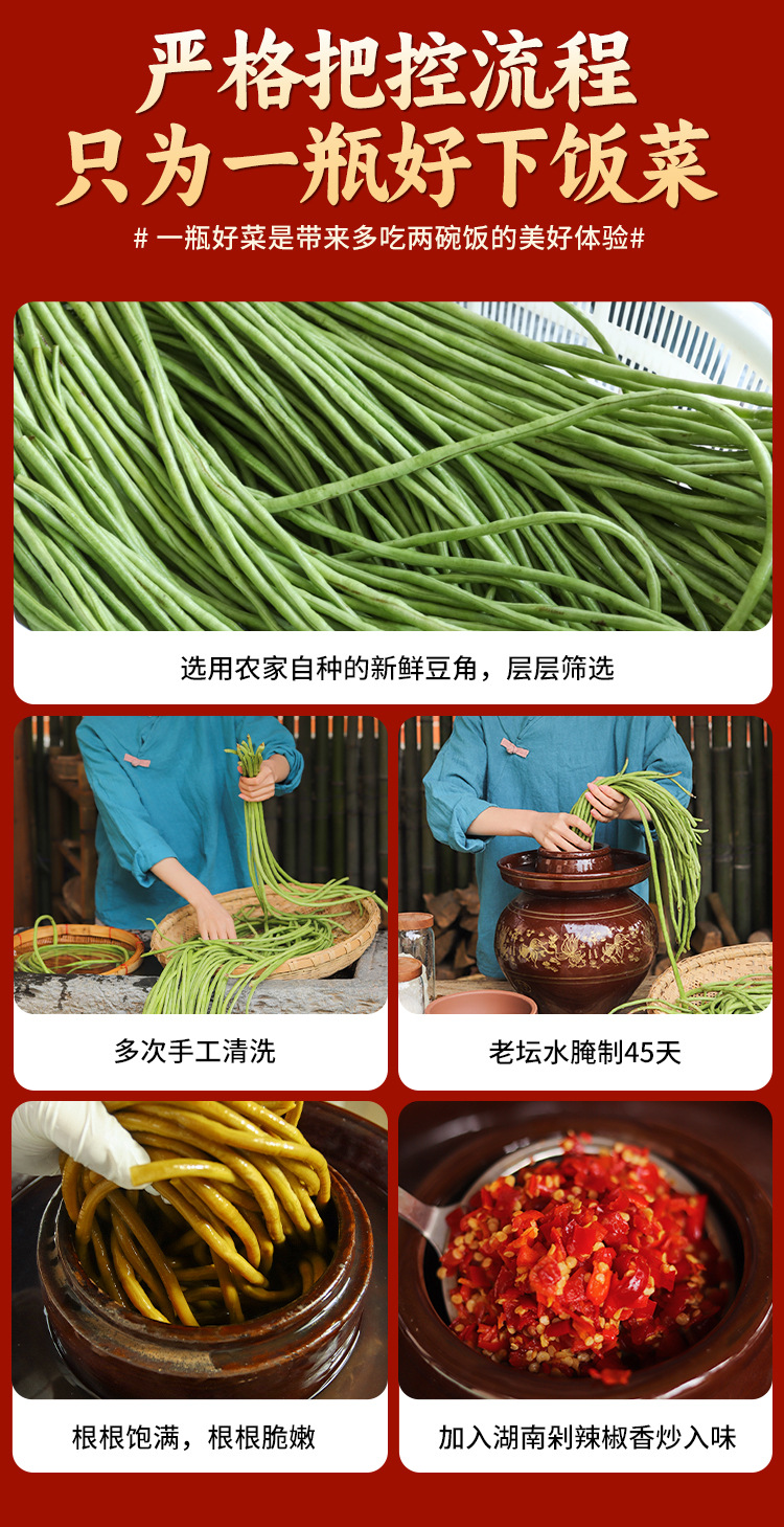 【工厂直发】香辣酸豆角腌制下饭菜280g自制咸菜豇豆湖南特产菜泡