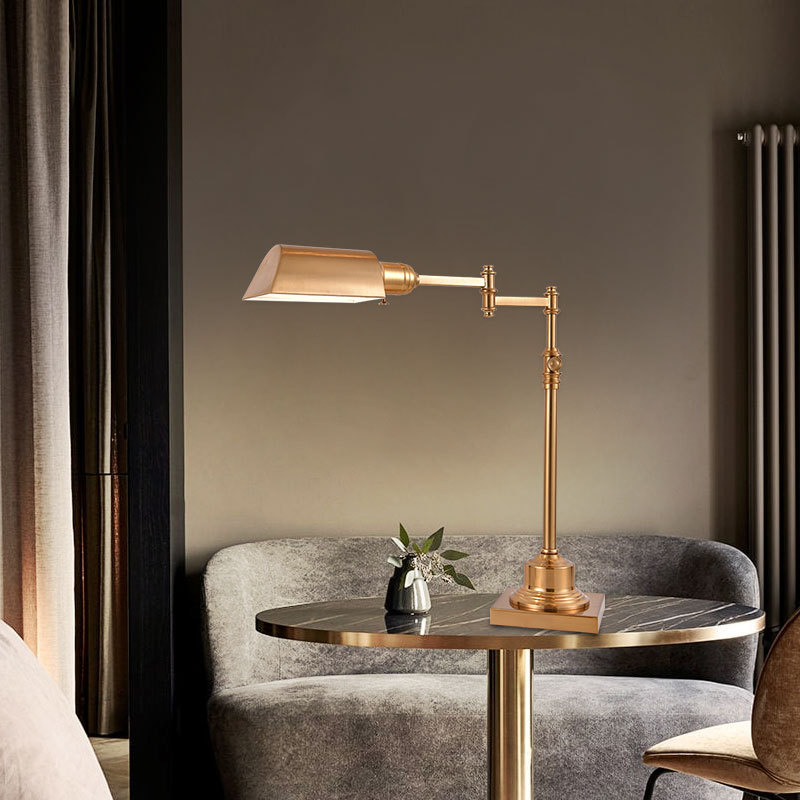 クロスボーダー・アメリカン・ライトラグジュアリー・高級テーブルランプ、ロングアーム・折りたたみ式・メタル、ホテル客室・ベッドサイドテーブル・装飾・書斎・学習用