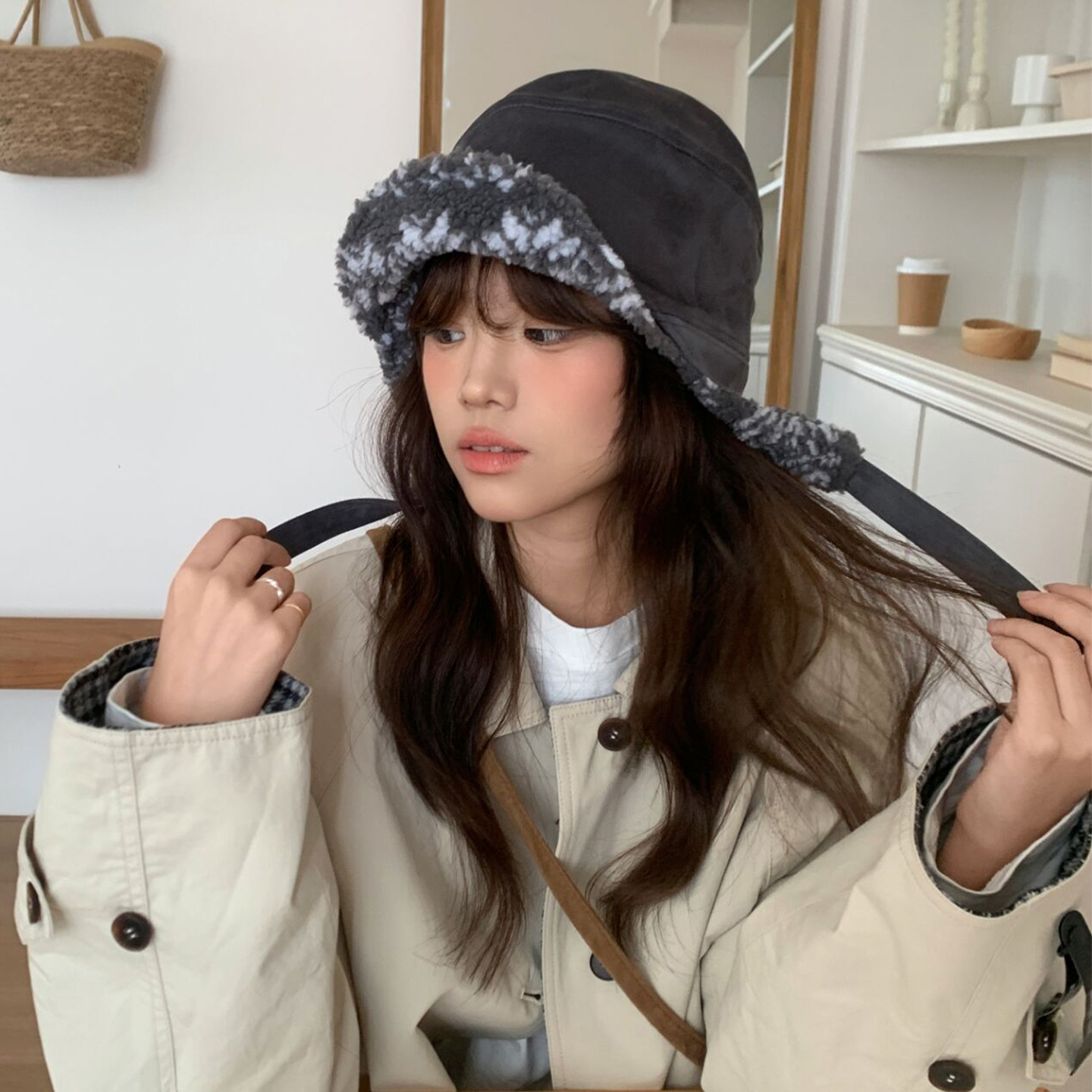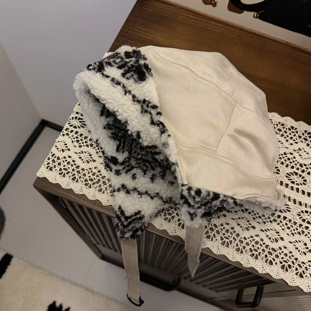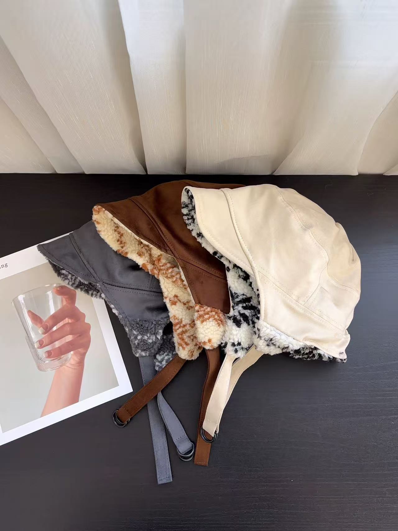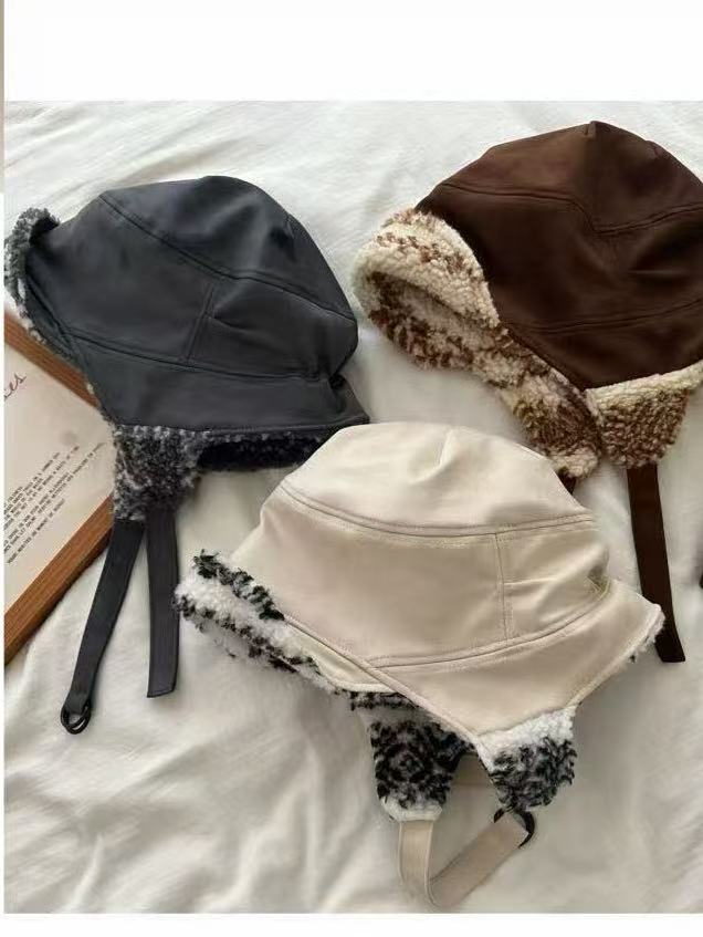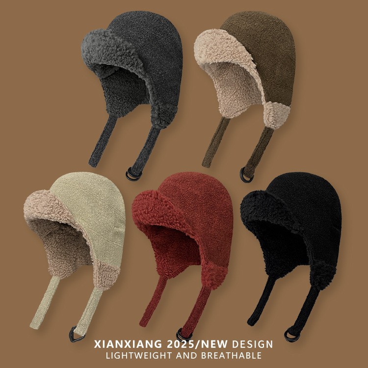 日系羊羔毛飞行帽双面戴护耳帽女冬季羊毛帽子男保暖显脸小雷锋帽