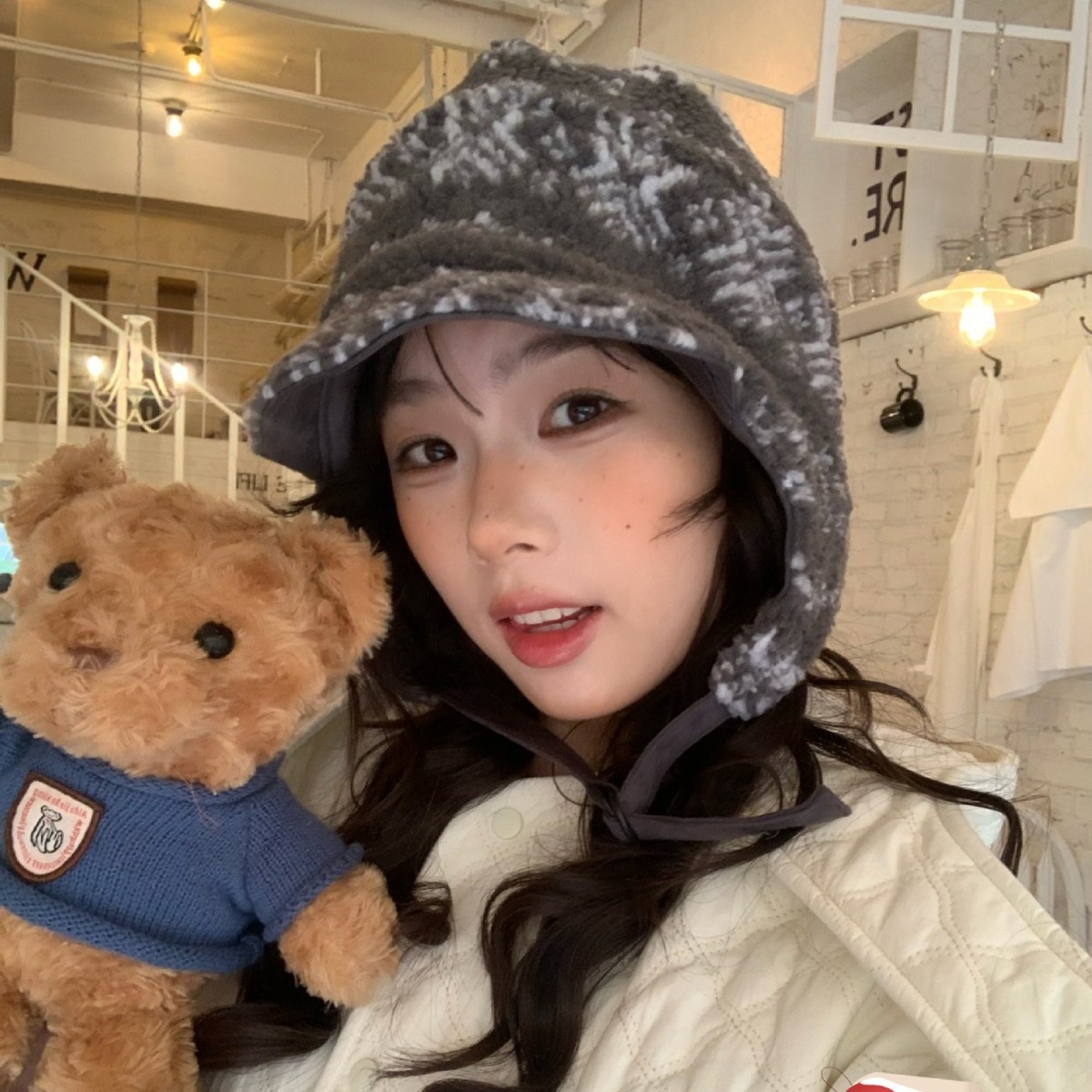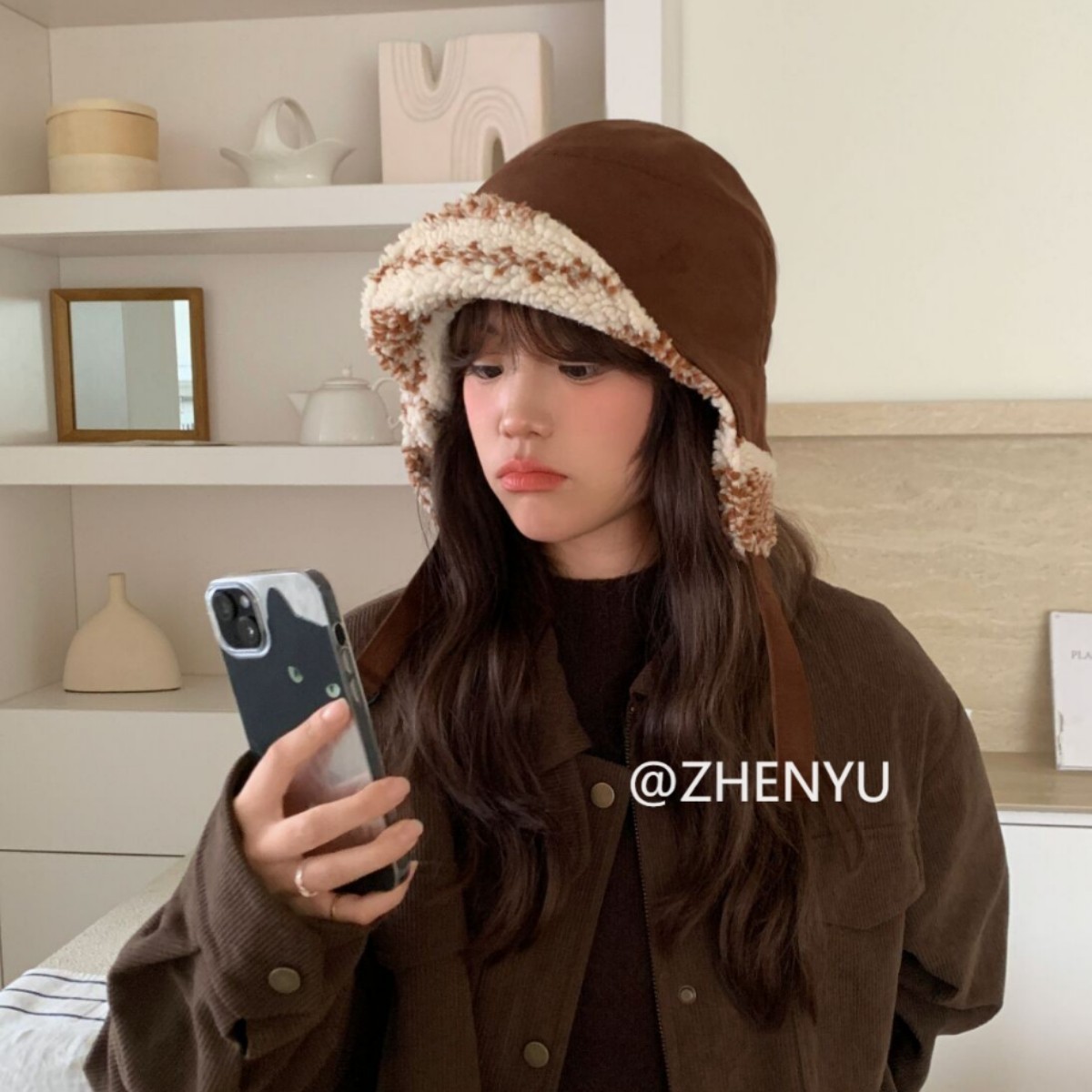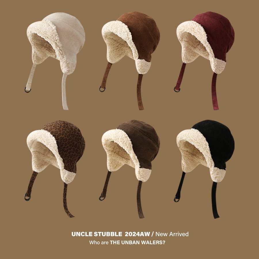 加绒羊羔绒飞行帽女生日系可爱护耳帽冬季加厚保暖雷锋帽男生潮人