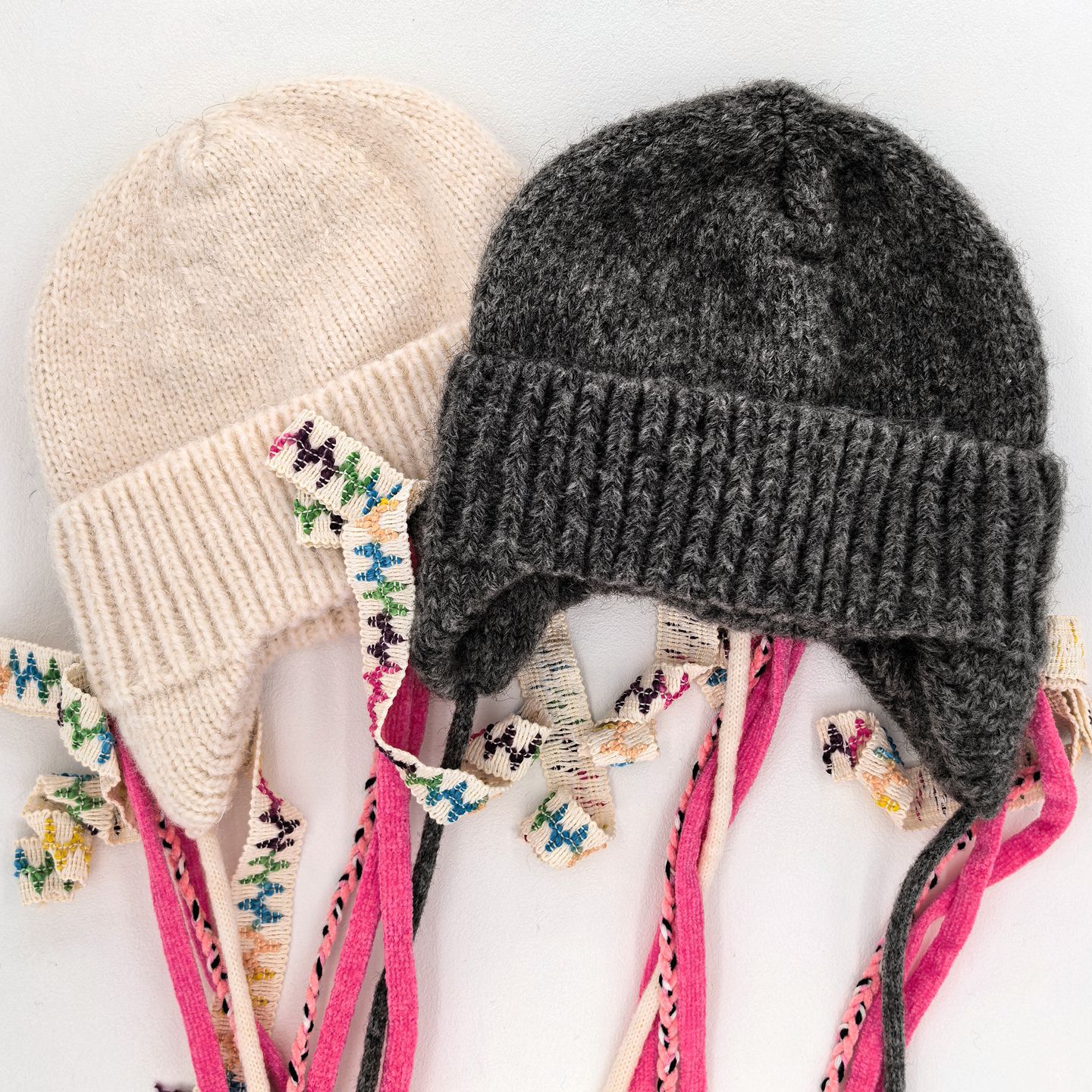 秋冬季新款纯色可爱猫耳朵绑带针织帽子女韩系防寒保暖毛线护耳帽