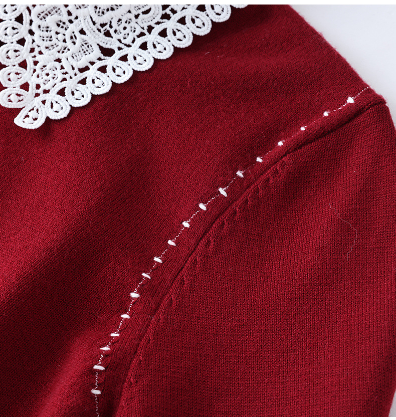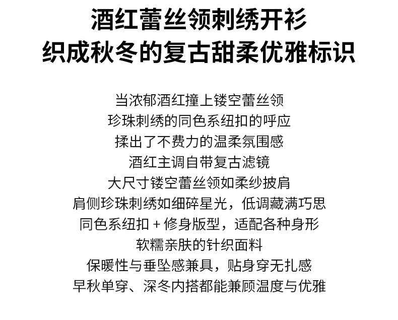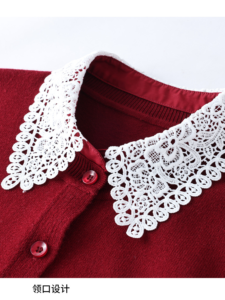 2025秋冬新款新年红色针织开衫女气质通勤镂空翻领长袖羊毛呢上衣
