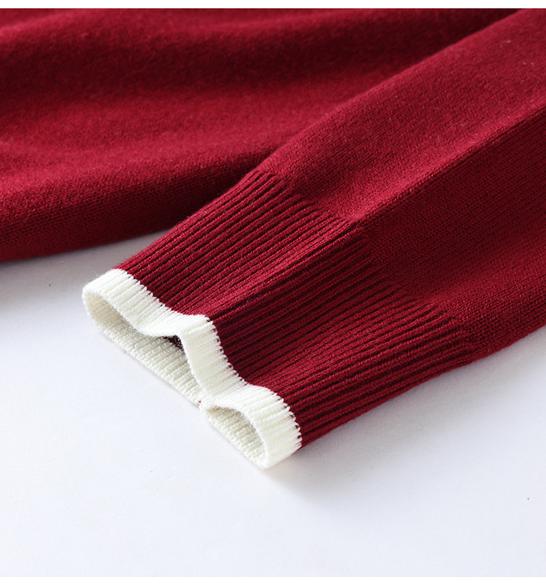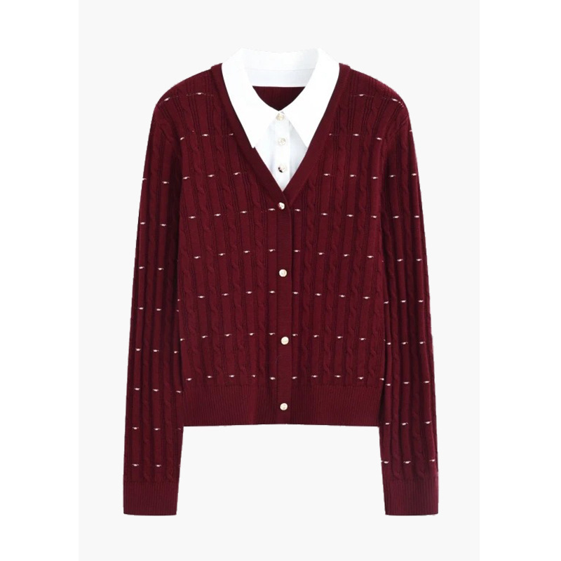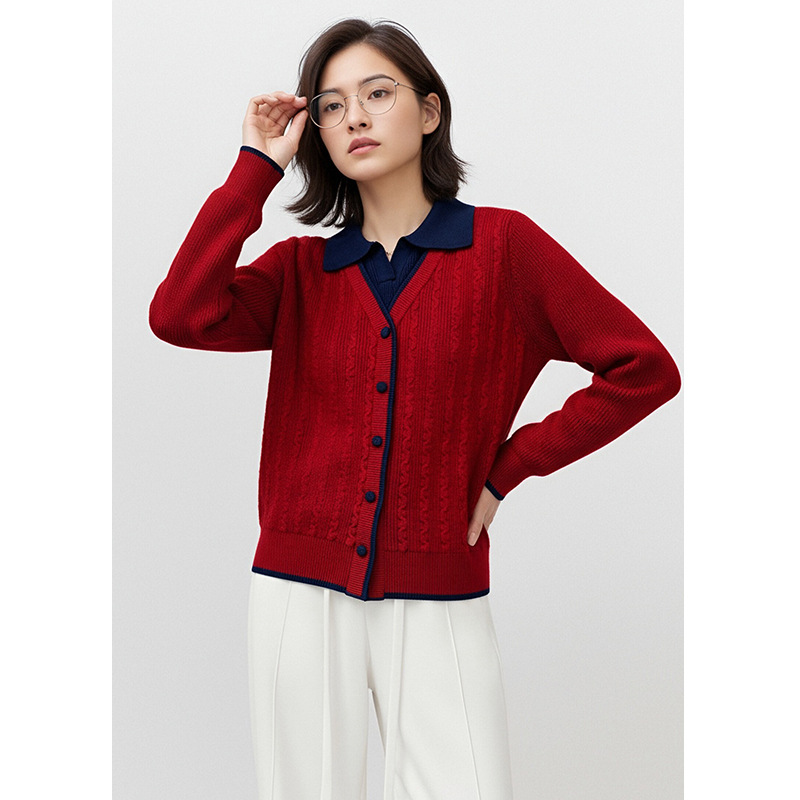 2025秋冬新款假两件翻领红色针织衫女设计感小众宽松显瘦时尚上衣